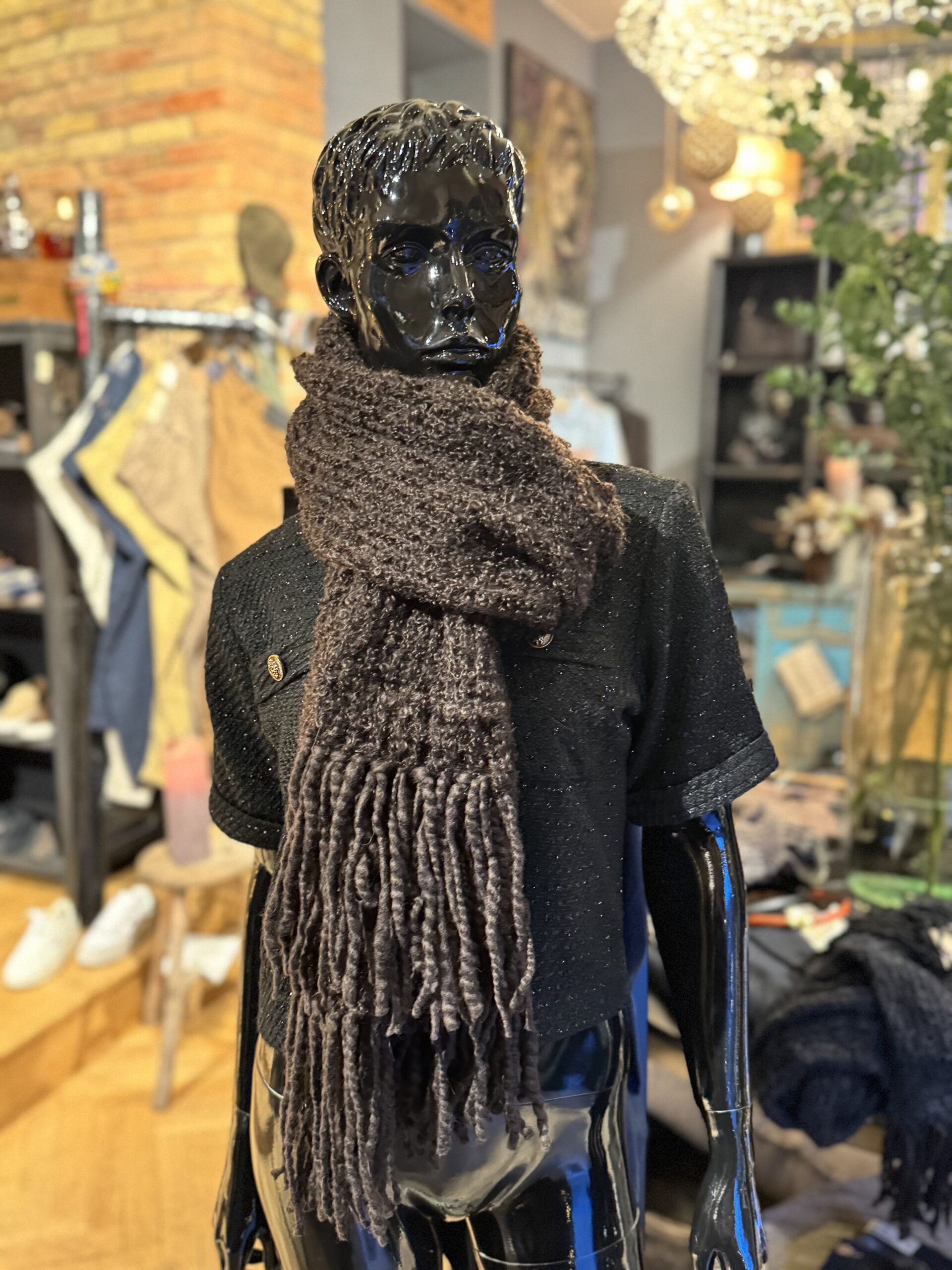 Super lækkert og blødt tørklæde fra Adéles Mohair. Tørklædet er chokolade brunt og lavet i den fineste mohair og uld kvalitet. Tørklædet har frynser for enden.