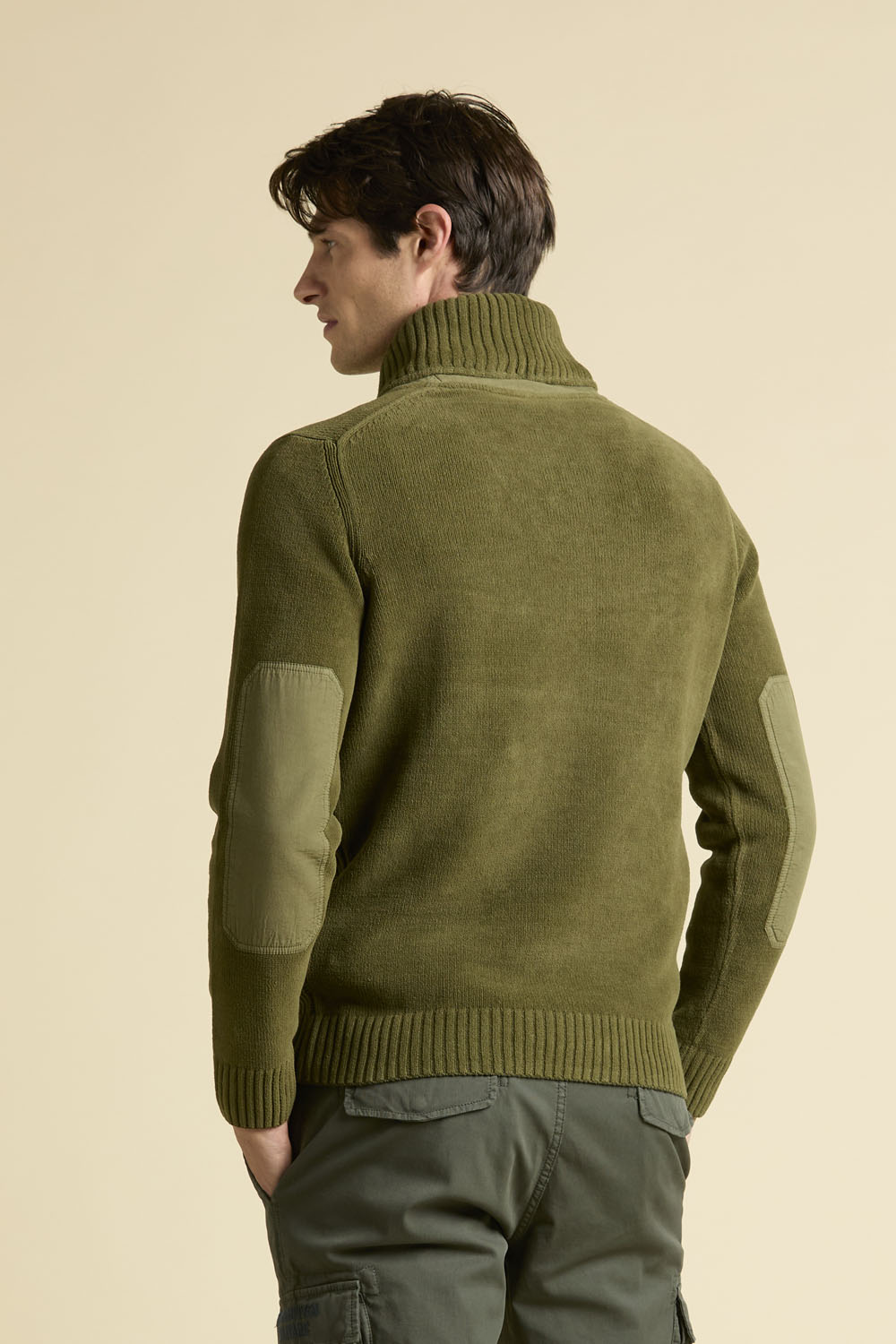 Super fed sweater fra Aeronautica Militare. Sweateren har en såkaldt ‘sjalskrave’, som giver god varme til halsen. Sweateren er oliven grøn, med ribbede detaljer og er lavet i 100% bomuld. Sweateren har Aeronauticas logo på brystet.
