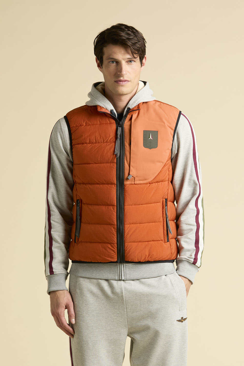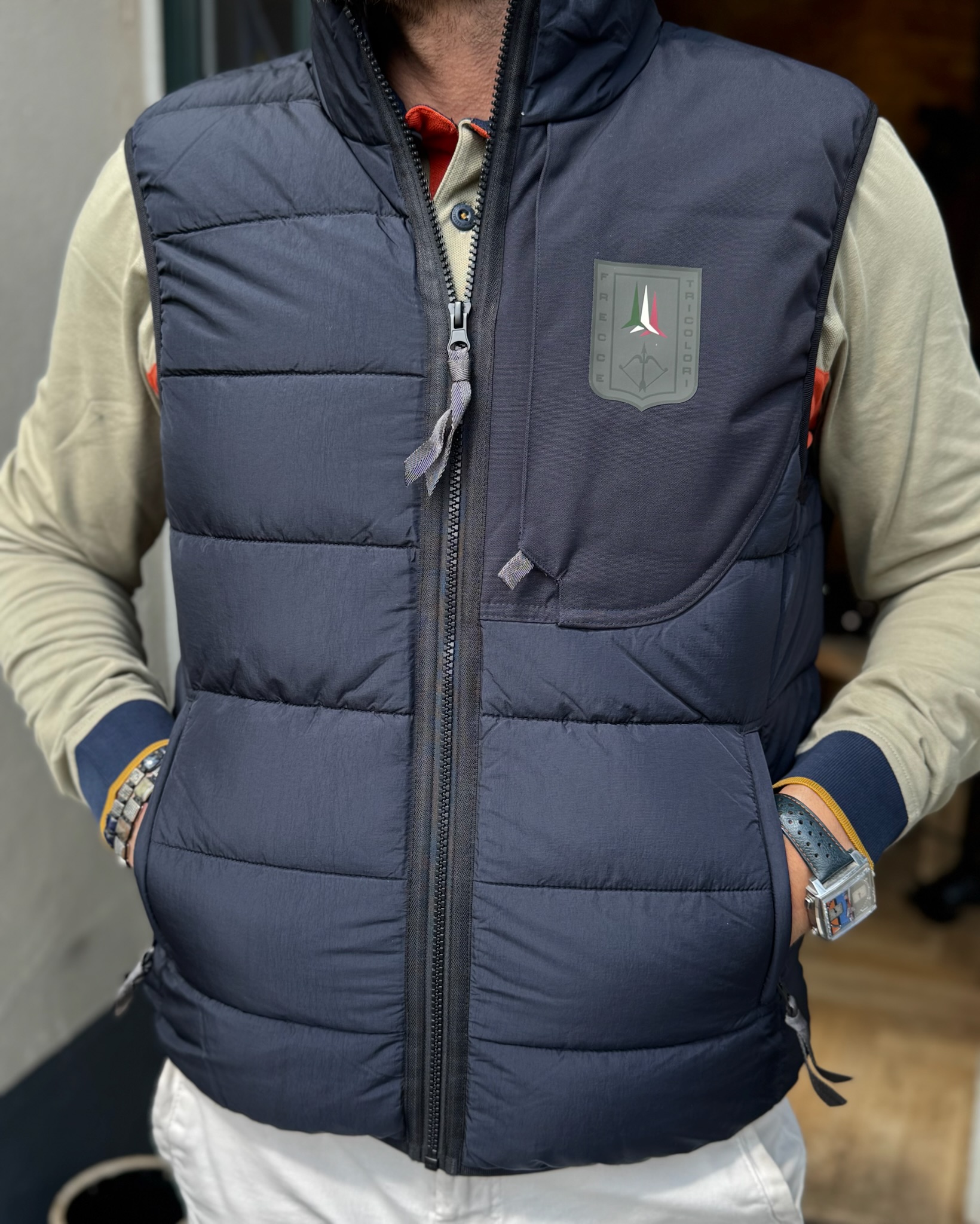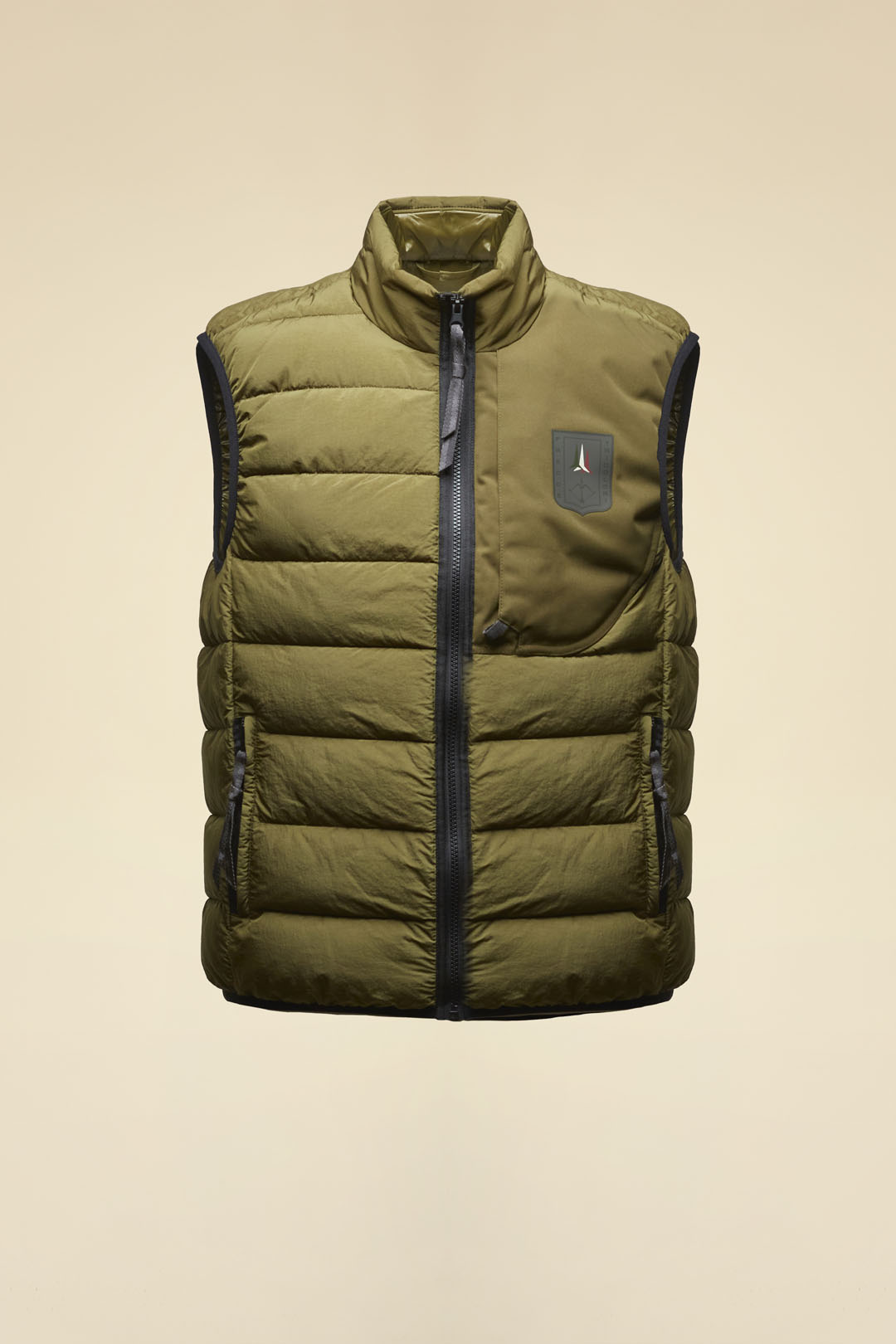 Fed dun vest fra Aeronautica Militare. Vesten er lavet i en god kvalitet, som gør at den er vandafvisende og super praktisk. Vesten lukkes med lynlås foran og har sidelommer med lynlås, samt en skjult brystlomme med lynlås. Vesten har også inderlommer.