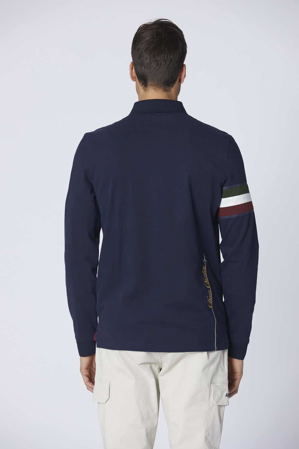 Lækker langærmet polo fra Aeronautica. Poloen er mørkeblå, med logo på brystet og ærmet, samt italienske flag på det ene ærme. Poloen har knapper foran og fåes i flere farver.