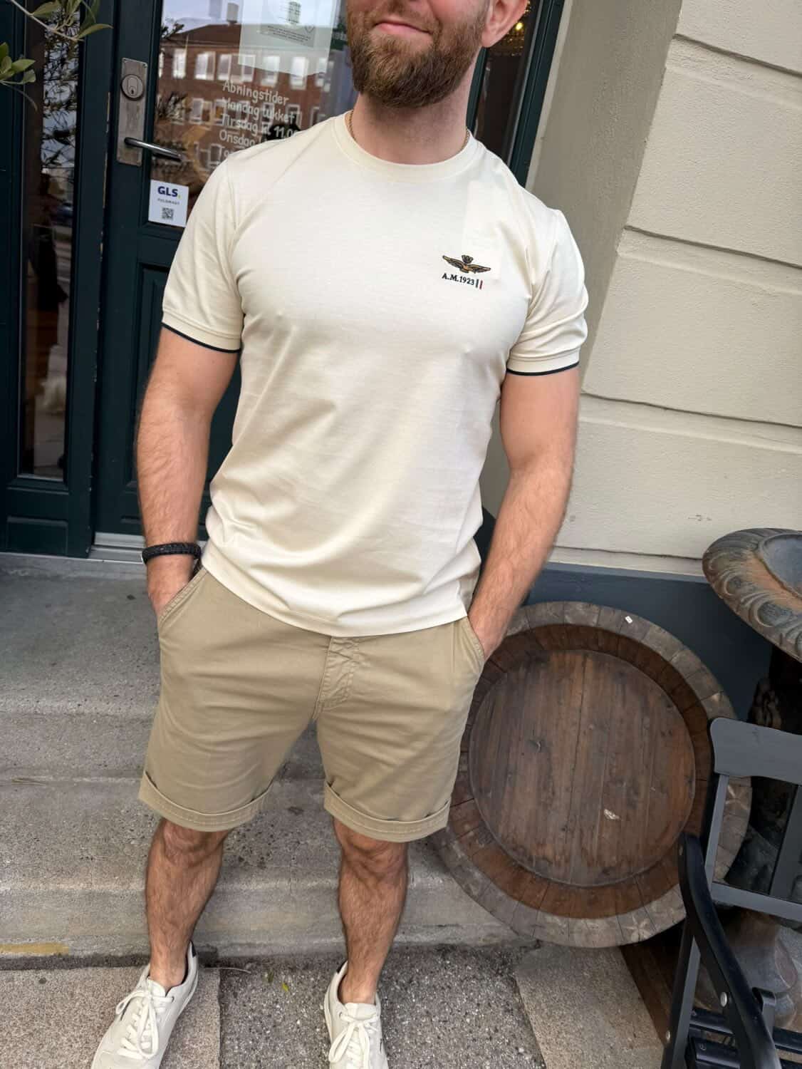 Denne herre-T-shirt skiller sig ud ved kvaliteten af ​​sin merceriserede bomuldsjersey, der giver en glat, let skinnende overflade, der fremhæver tøjets raffinerede look. Designet er rent, men alligevel gennemtænkt: en pæn rund hals, kontrasterende kanter på ærmerne og et broderet logo på brystet, der tilføjer karakter uden overflødighed. En T-shirt skabt til dem, der ønsker komfort og stil i ét stykke, perfekt at have på med denim, chinos eller under en let jakke for et sofistikeret, men ubesværet look.