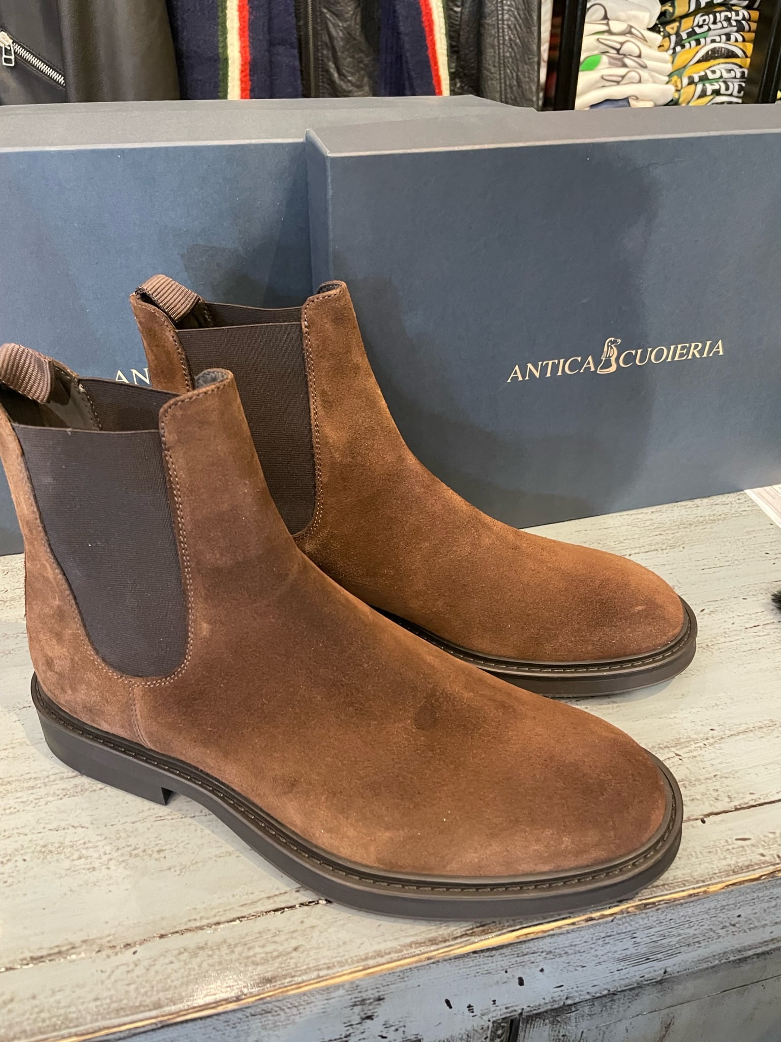Super lækre støvler fra Antica Cuoeria. Støvlerne er i ruskind og er i farven chocolate.