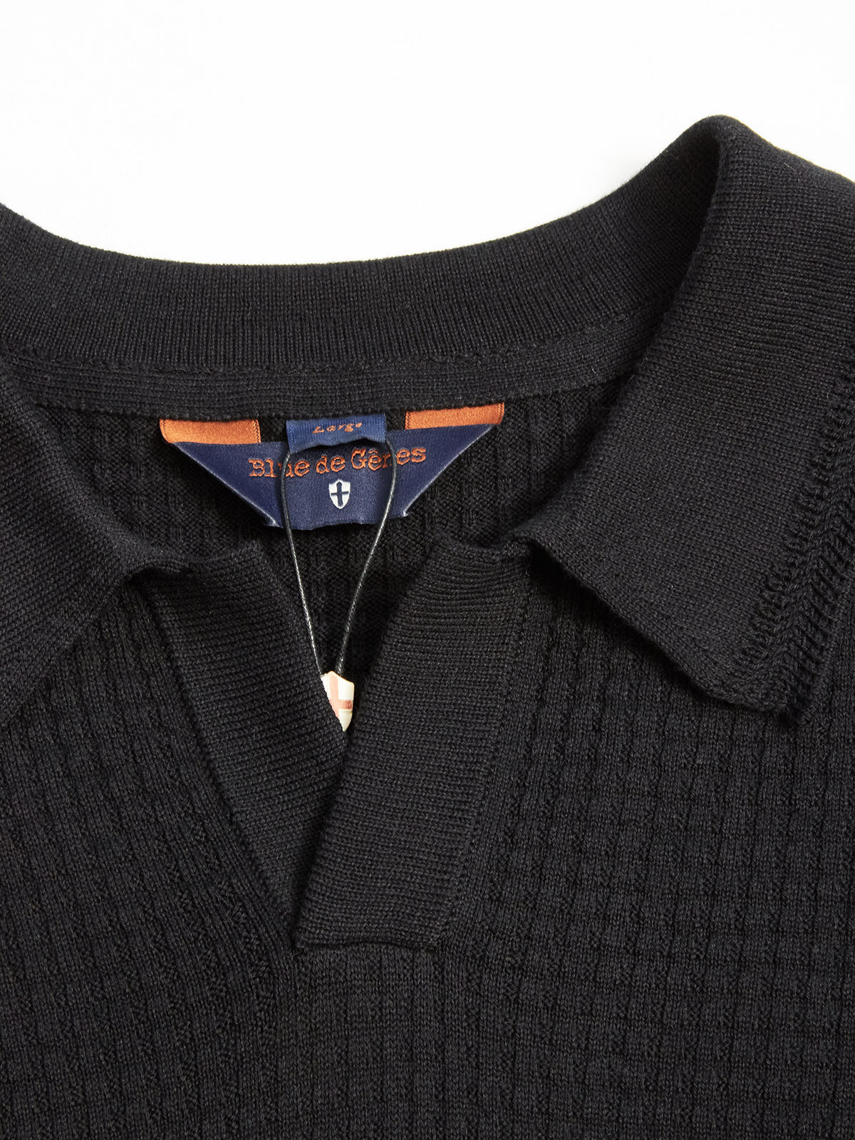 Fedeste strikkede polo fra Blue de Gênes. Poloen er i farven sort.