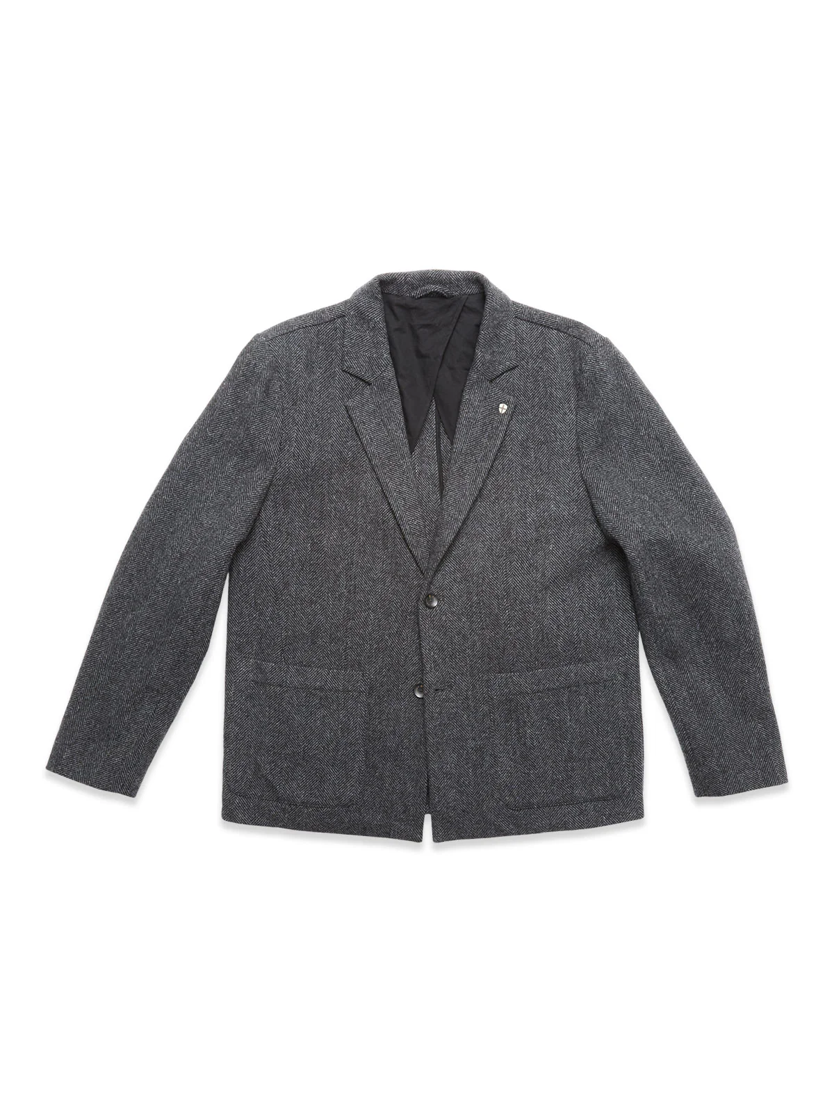 Super lækker blazer fra Blue de Gênes i uld. Blazeren er lavet i et grå/sort sildebens mønster. Blazeren har klassisk revers, med 2 knapper til lukning foran og 2 forlommer, samt 1 inderlomme. Jakken er dekoreret med blue de gênes logo på reverset.