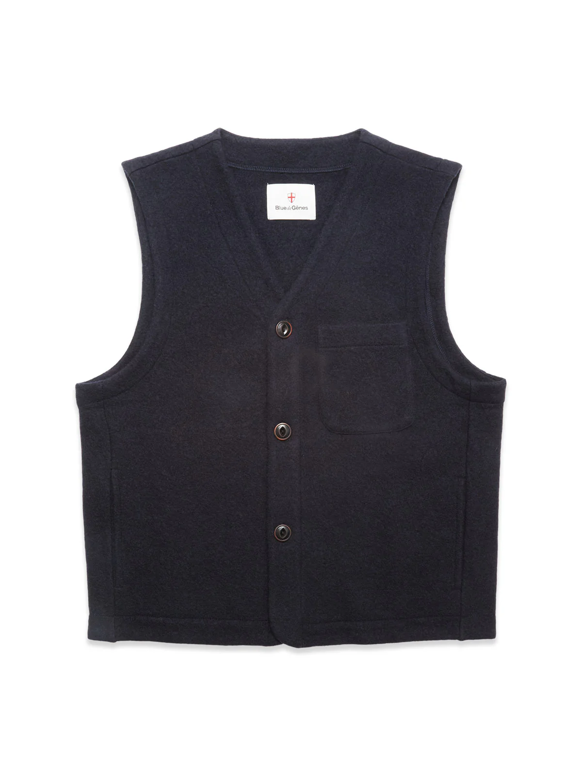 Fed uld vest fra Blue de Gênes. Vesten har et regular fit, med 1 brystlommer og 2 sidelommer. Vesten er lavet i en uld, som gør den naturlig isolerende og åndbar. Vesten fåes i brun og navy.