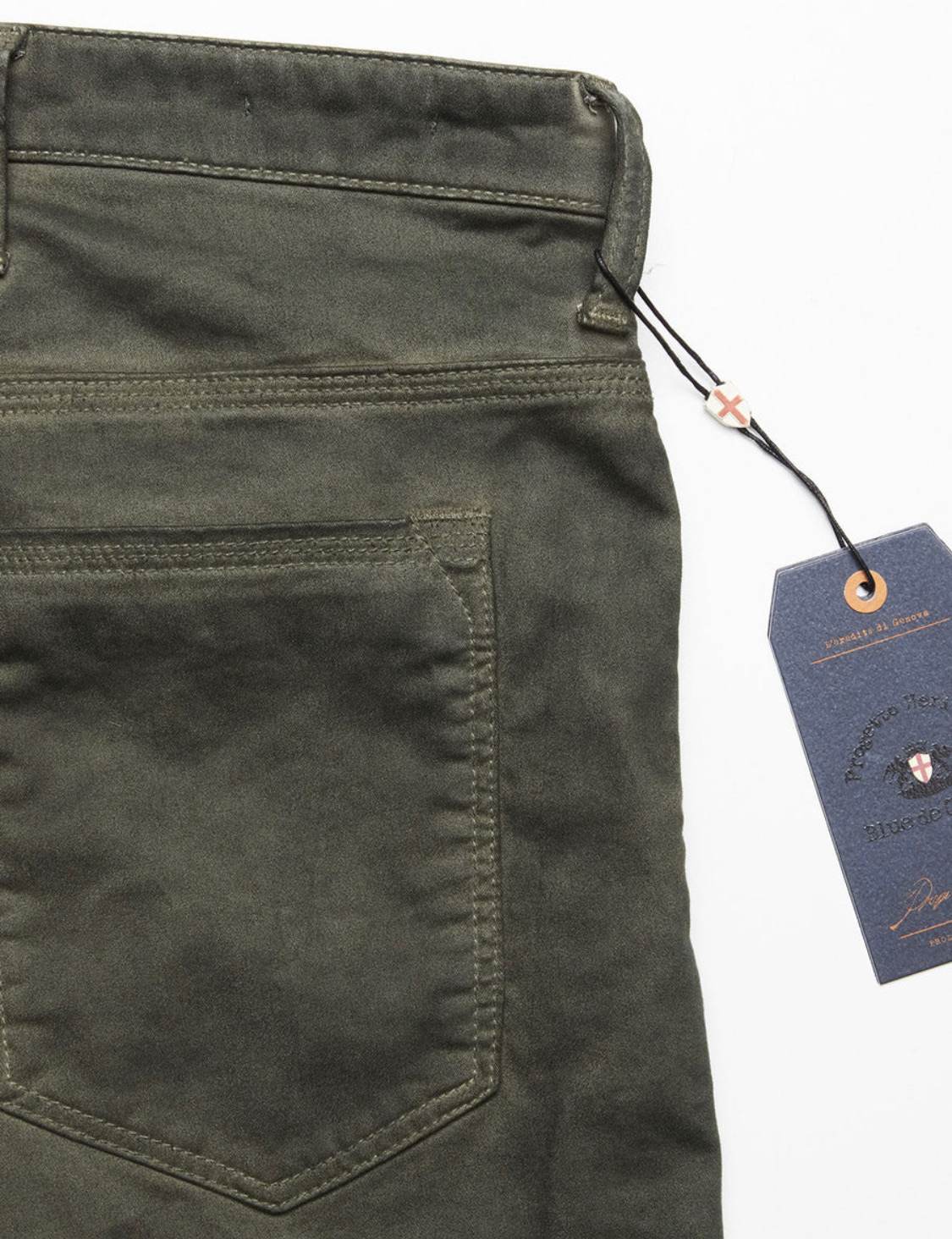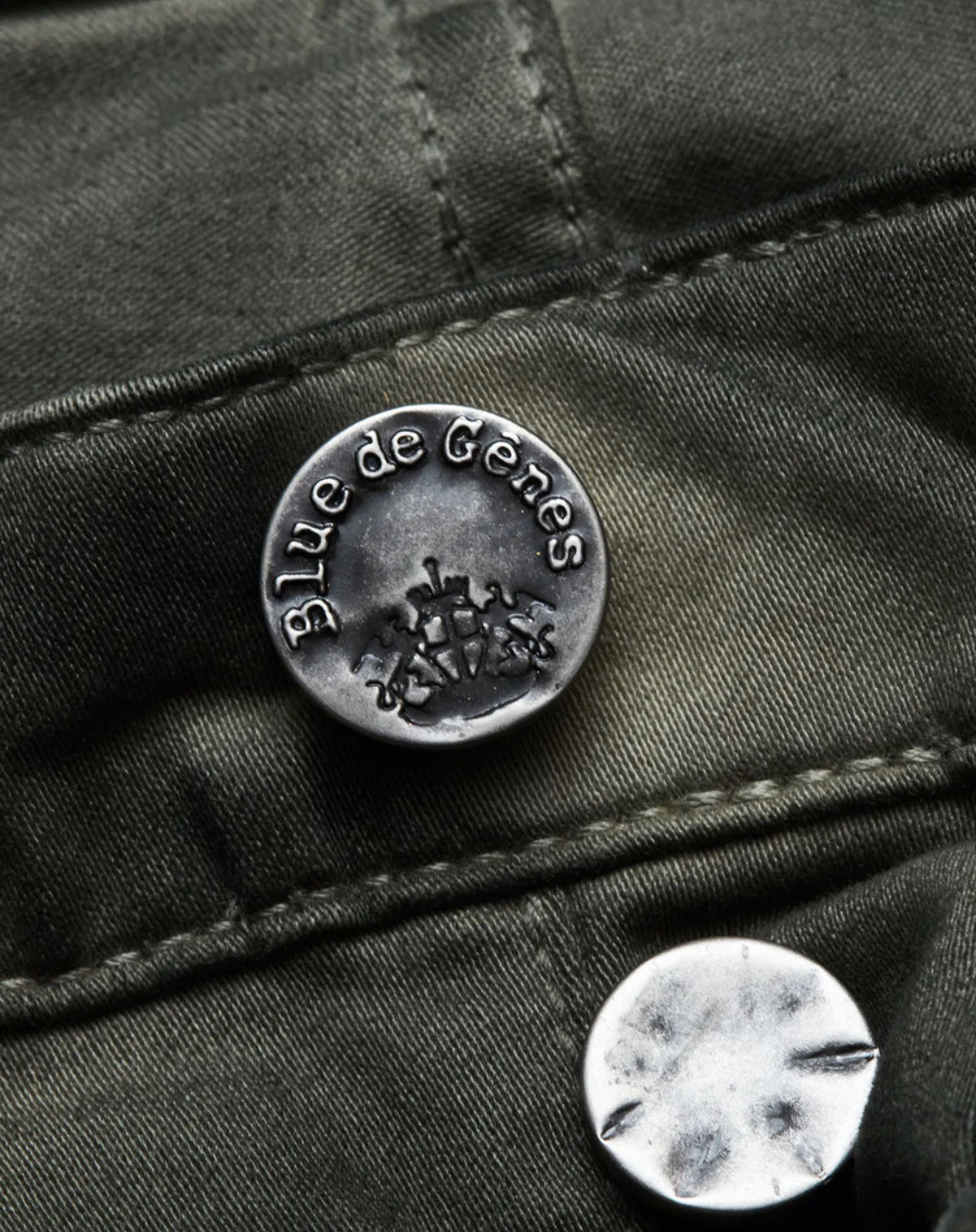 Featured with repair details at the coin pocket and back belt loop, pocket print, branded buttons, hidden rivets and the Blue de Gênes flag rivet subtly placed at the right front pocket.