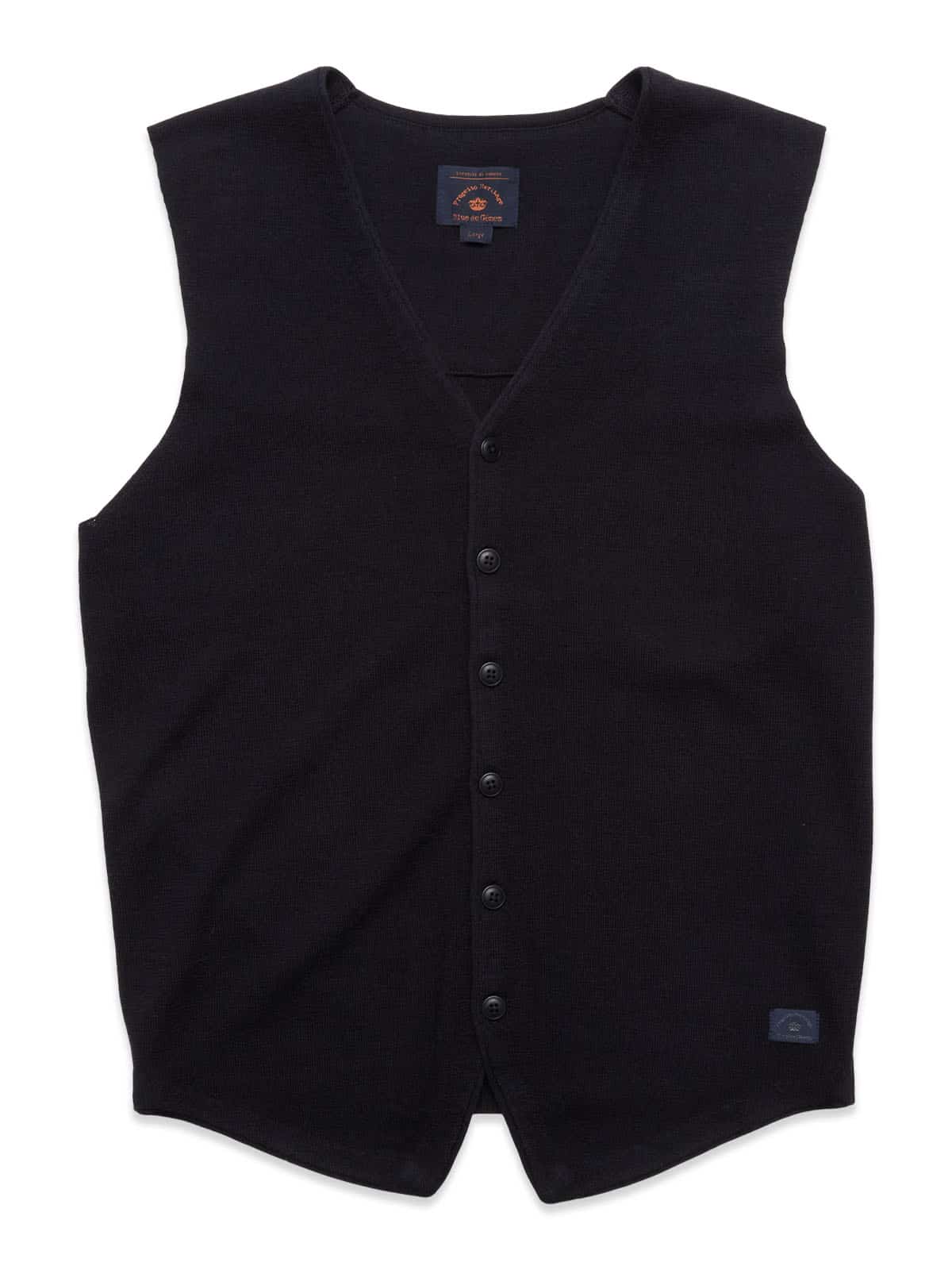 Flot strikket vest fra Blue de Genes. Vesten lukkes med knapper foran og er i farven navy.