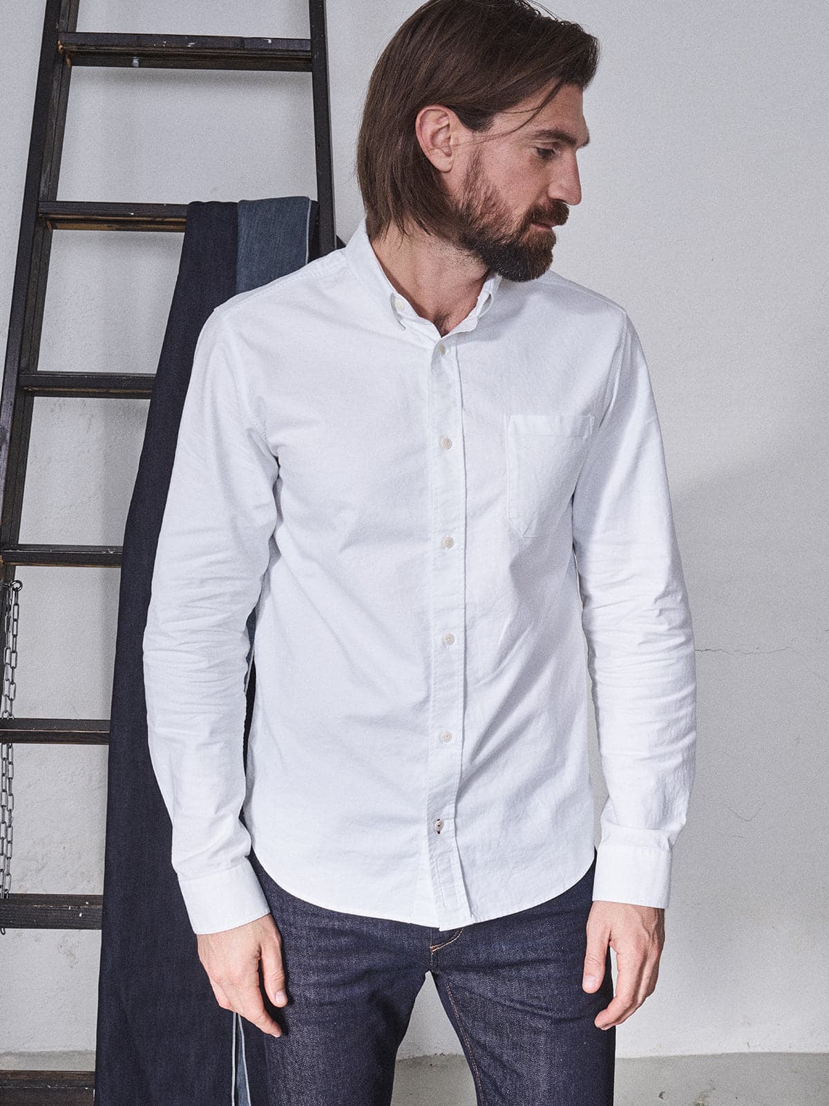 Flot hvid skjorte fra Blue de Genes. Denne skjorte er en klassisk model, som er god som hverdags skjorte og ikke mindst festlige lejligheder. Skjorten er lavet af 100% økologisk bomuld og er super komfortabel at have på. Skjorten er udstyret med en brystlomme på venstre side og flotte knapper lavet af corozo-nød.