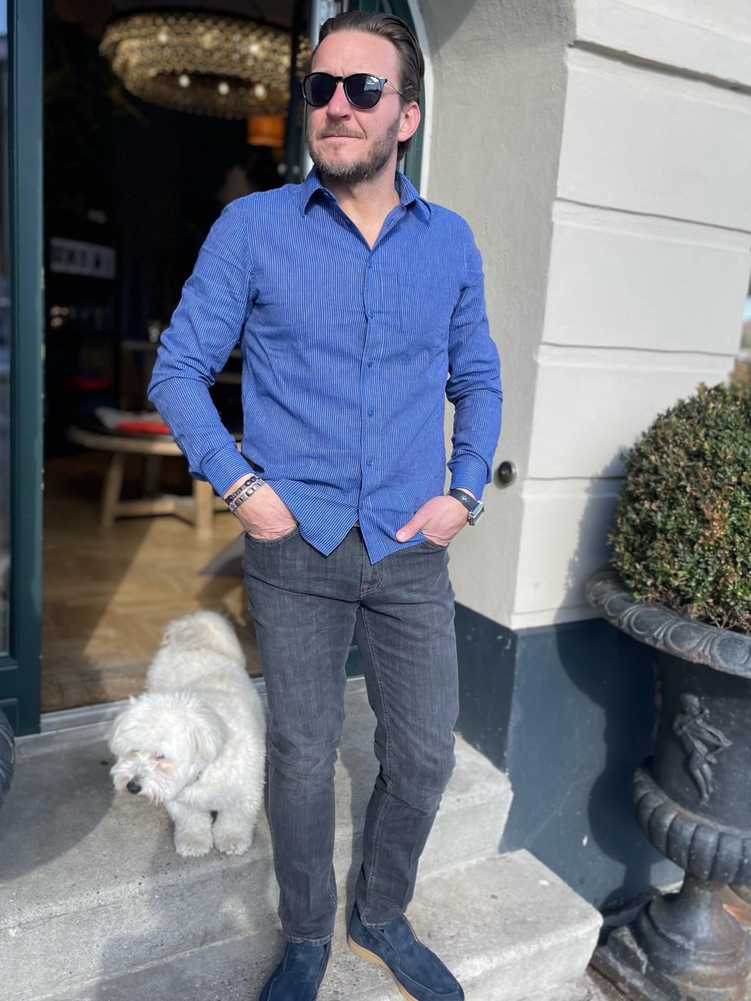 Lækreste skjorte fra Blue De Gênes. Skjorten er blå og med hvide striber.