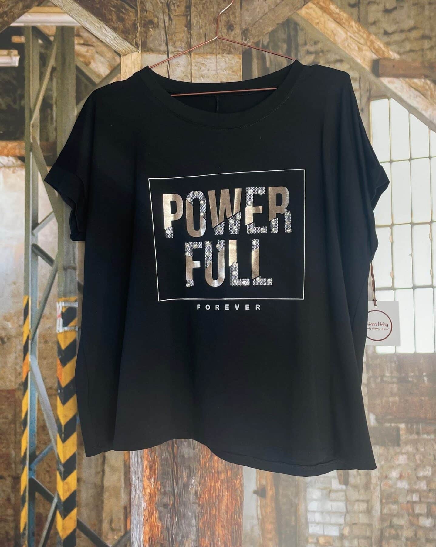Flot t-shirt fra Cabana Living, med et flot print samt teksten ‘powerfull’. T-shirten er løstsiddende og har opsmøg på ærmerne.