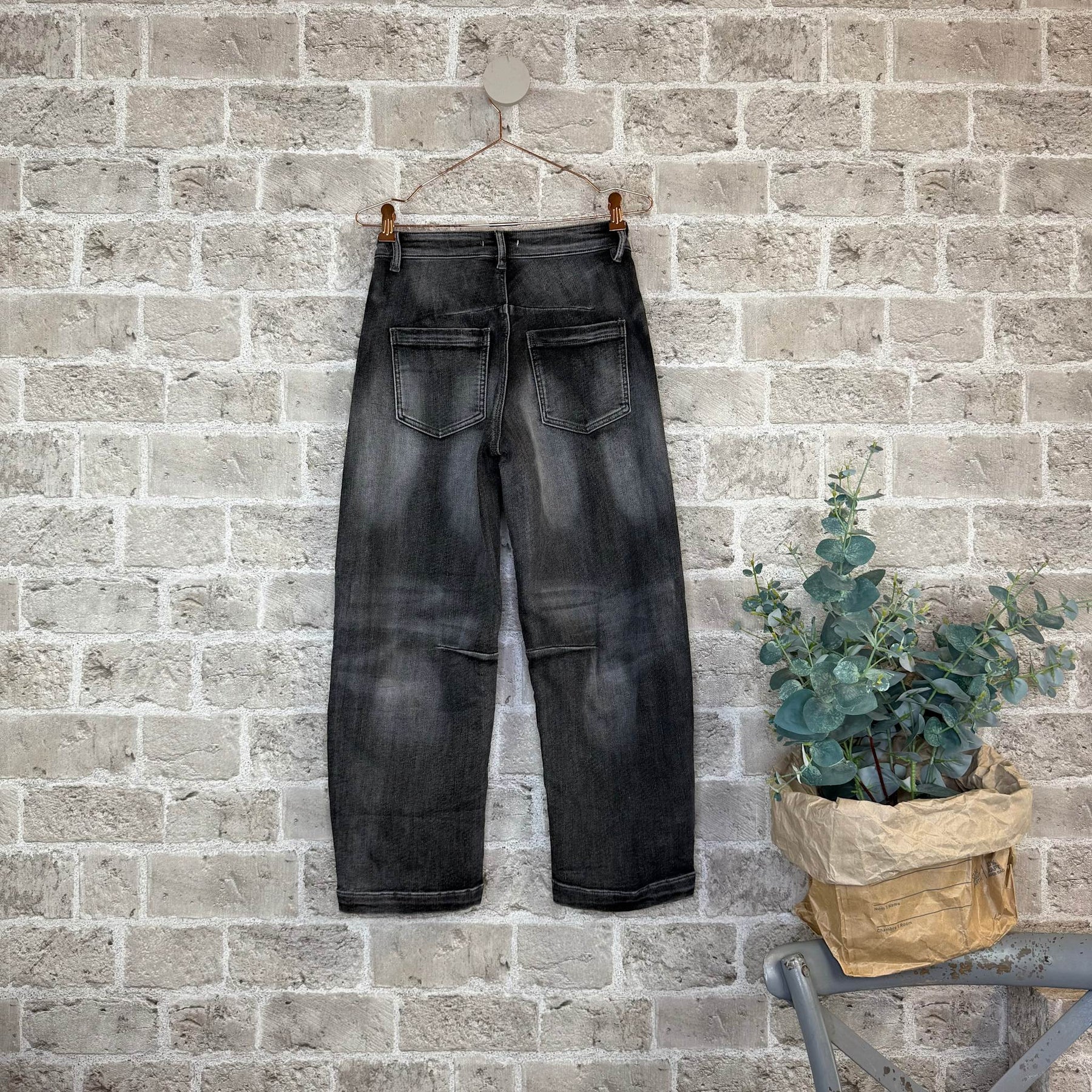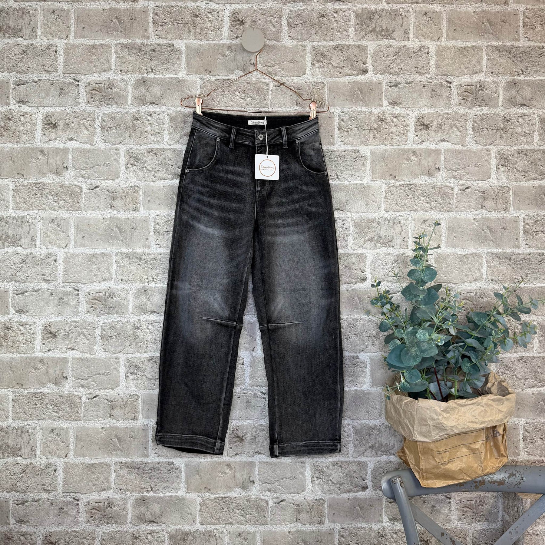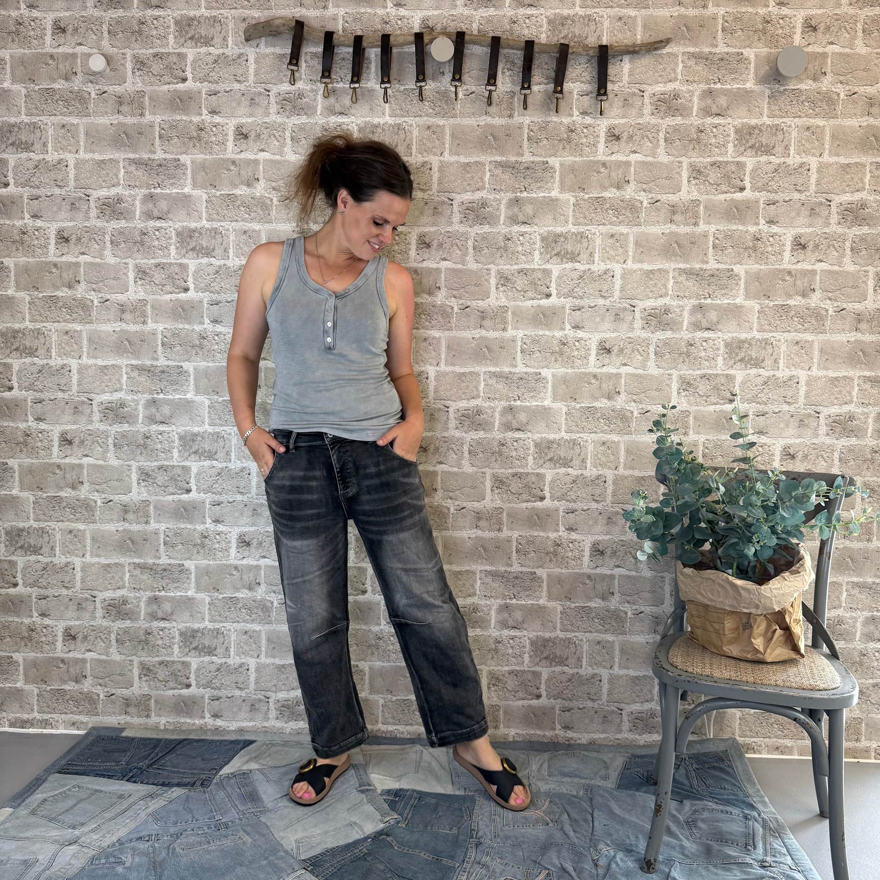 Fede jeans fra Cabana Living, I sort/grå vask. Bukserne har lige ben, med fede syninger og massere af stretch.