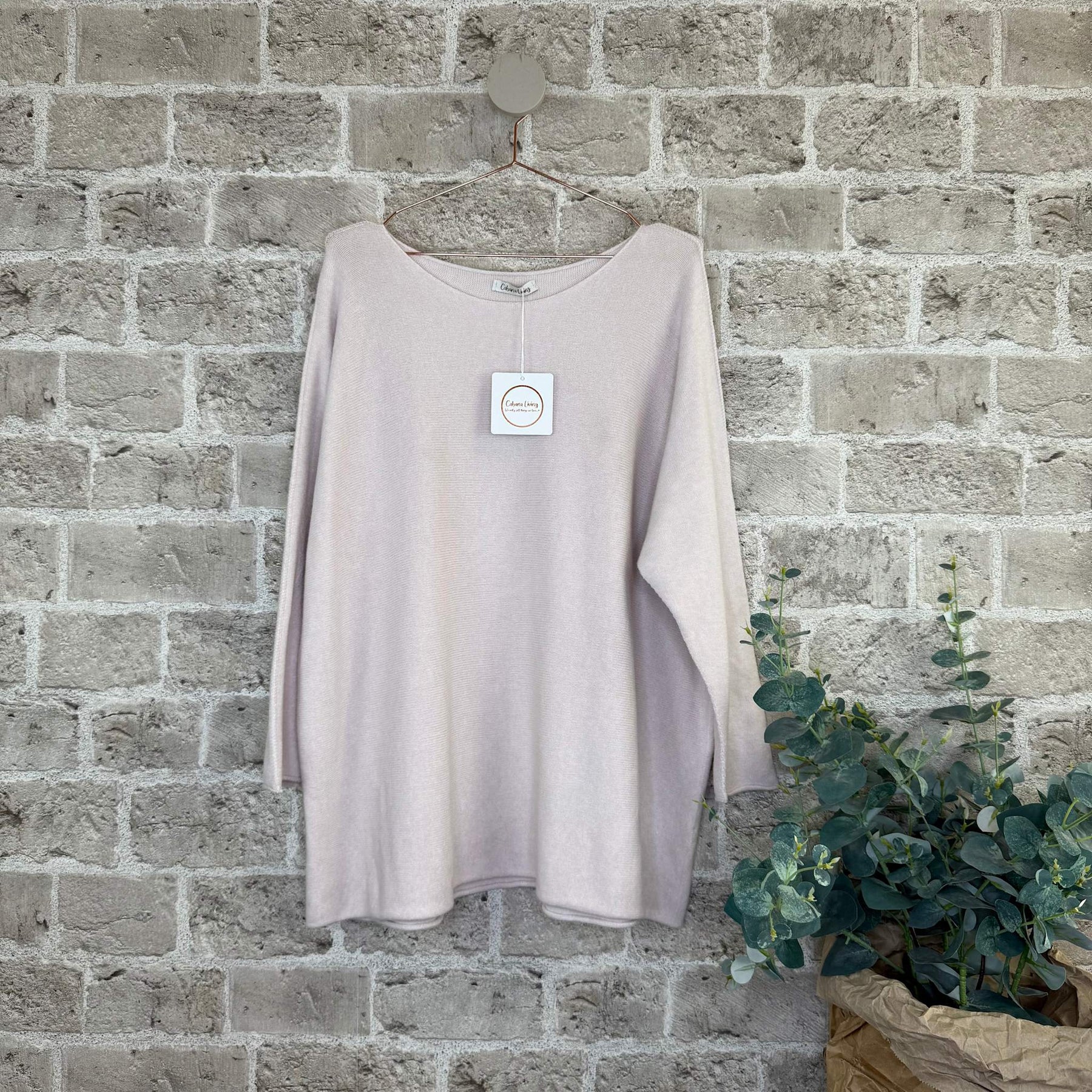 Lækker og blød strik fra Cabana Living. Strikken har båd-hals og 3/4 ærmer og en lang pasform.