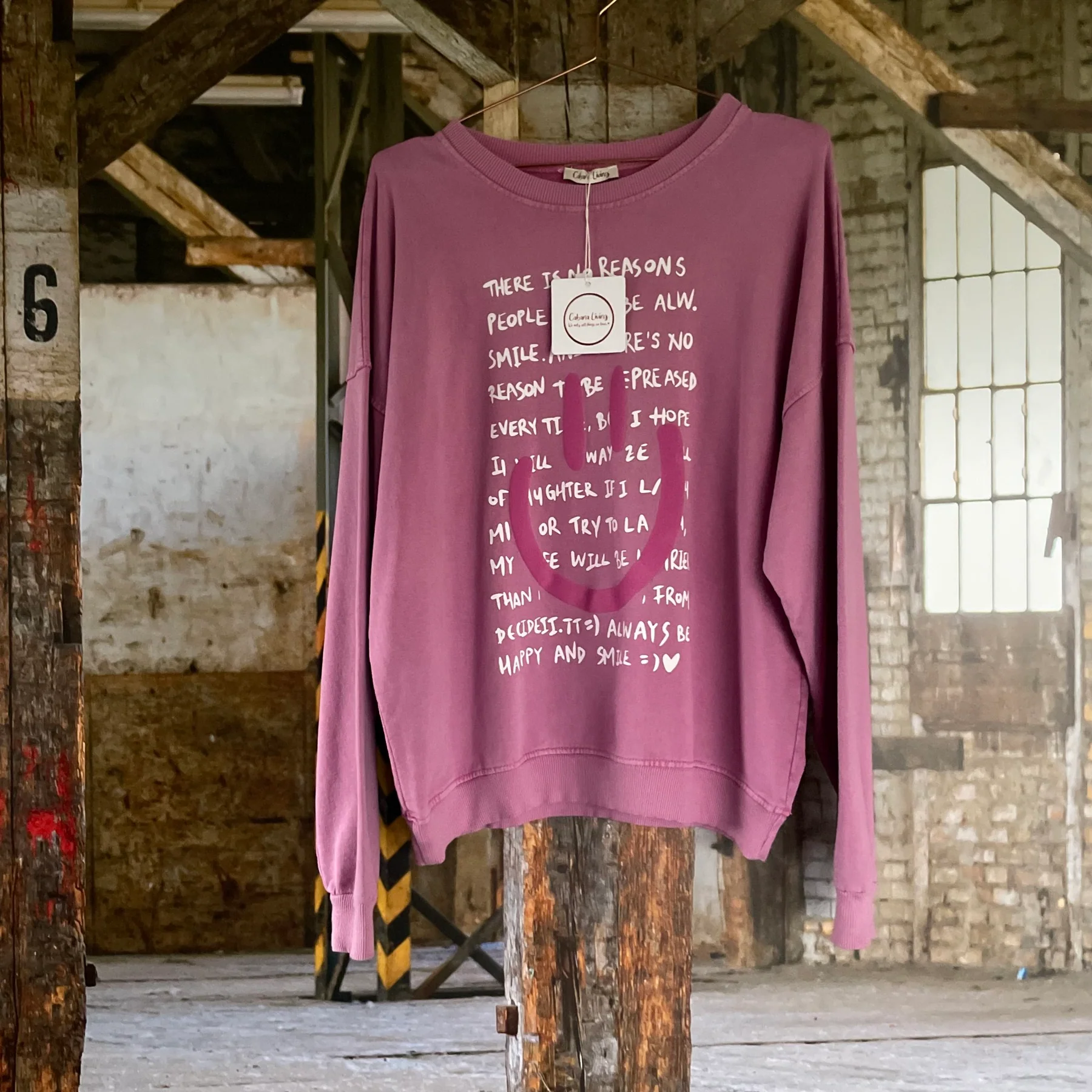 Super fed sweatshirt fra Cabana Living. Sweatshirten er rosa, med en smiley foran og tekst. Sweatshirten er onesize.