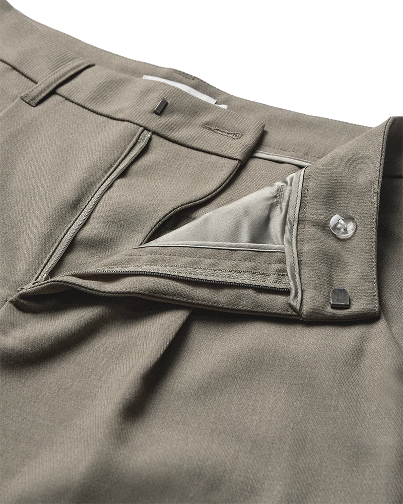 MTAILOR-PANT er et par højtaljede bukser i en eksklusiv kvalitet med skjult hægte- og lynlåslukning, sidelommer, en løs pasform samt læg i de ankellange bukseben, der giver en elegant indsnævring.