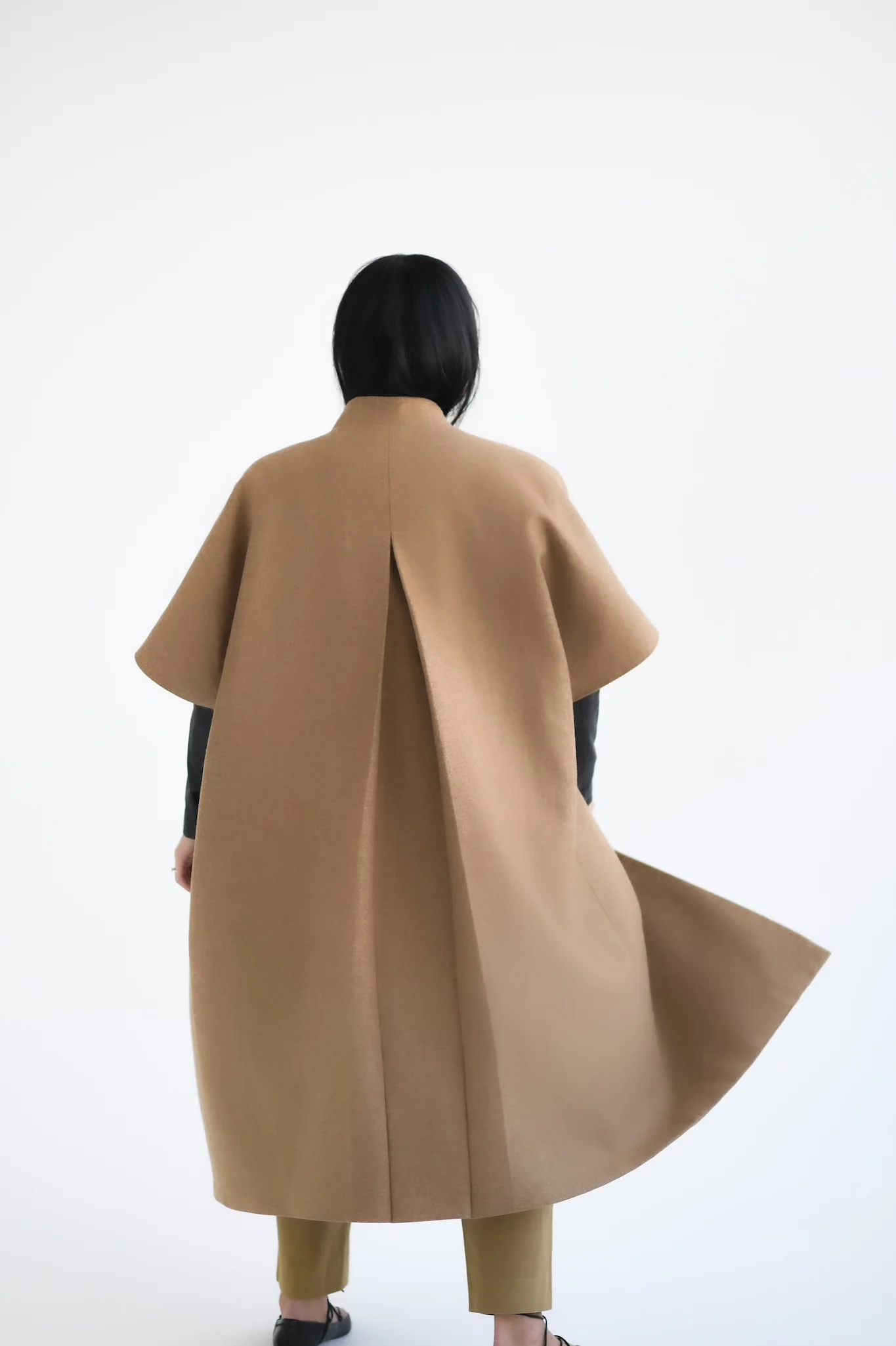 Eksklusiv og elegant kåbe fra Crowd Copenhagen. Kåben her er lang, med korte ærmer og et langt, flot og lukket slids bagpå. Kåben har usynlige guldknapper til lukning. Kåben er lavet i uld og cashmere, som sikrer dig komfort og varme. Brug kåben med en blazer eller et tyk, lækker strik under.