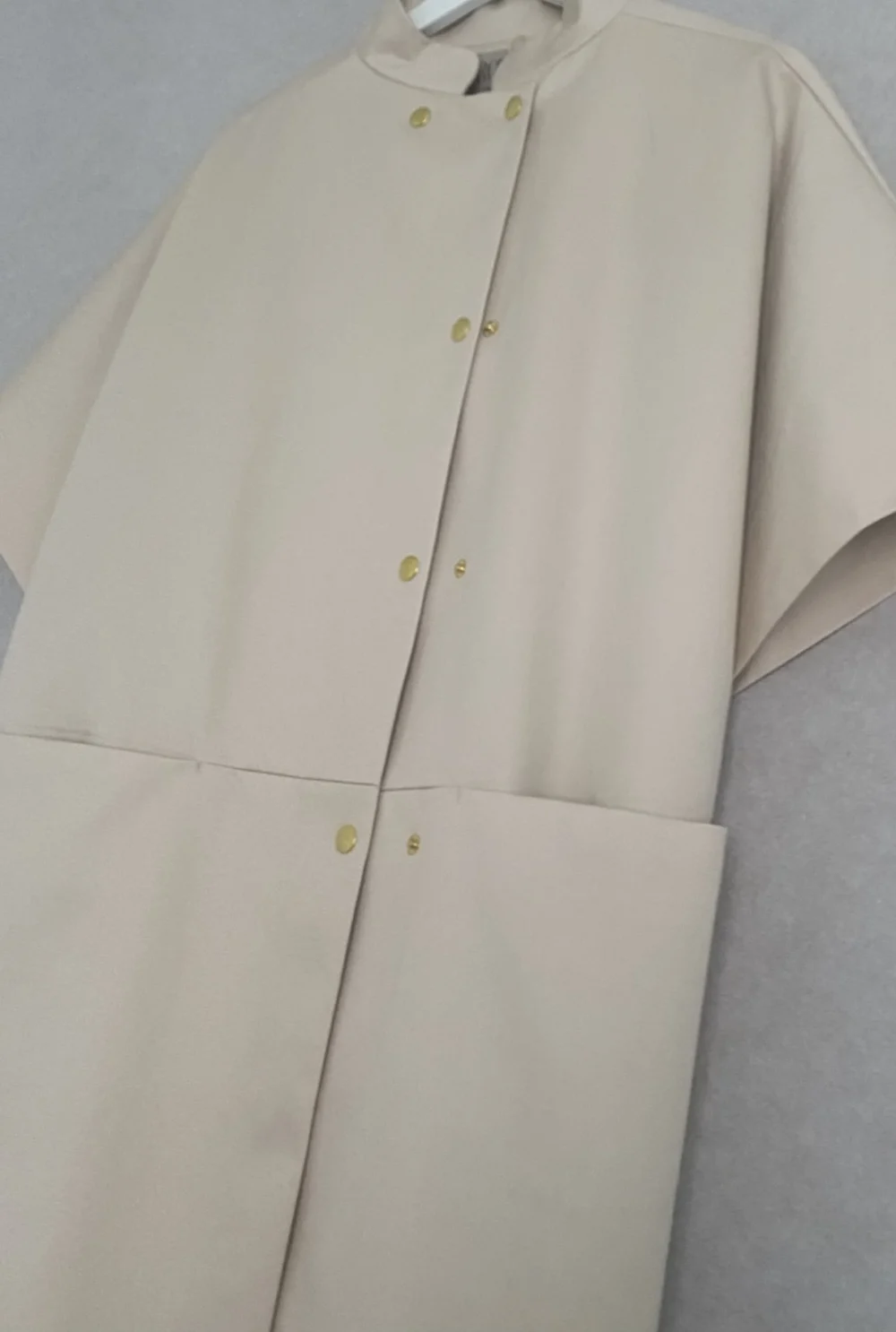 Smuk, smuk kåbe fra Crowd Copenhagen. Kåben er oversized, med guldknapper til lukning, korte ærmer, dybe forlommer og et elegant slids bagpå. Denne kåbe har et fantastisk udtryk og det er næsten lige meget hvad man har på indenunder, så ser man bare velklædt og flot ud.