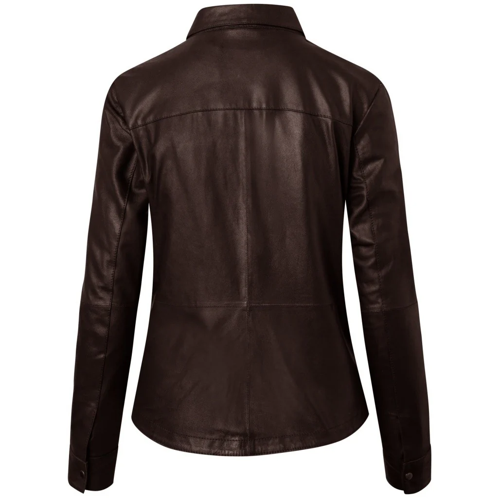 Lækker brun skindskjorte fra Depeche. Skjorten er slim fit, med trykknaplukning foran. Skjorten har lækker stretch.
