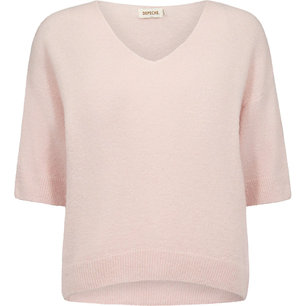 Strikken har et regular fit med korte T-shirt-ærmer og drop shoulders, hvilket skaber et afslappet og tidssvarende udtryk. V-udskæringen tilfører et feminint touch og gør strikken nem at style både alene eller over en skjorte. Silhuetten er enkel og flatterende, hvilket gør Sarah Alpaca v-neck strik til et alsidigt item i garderoben.