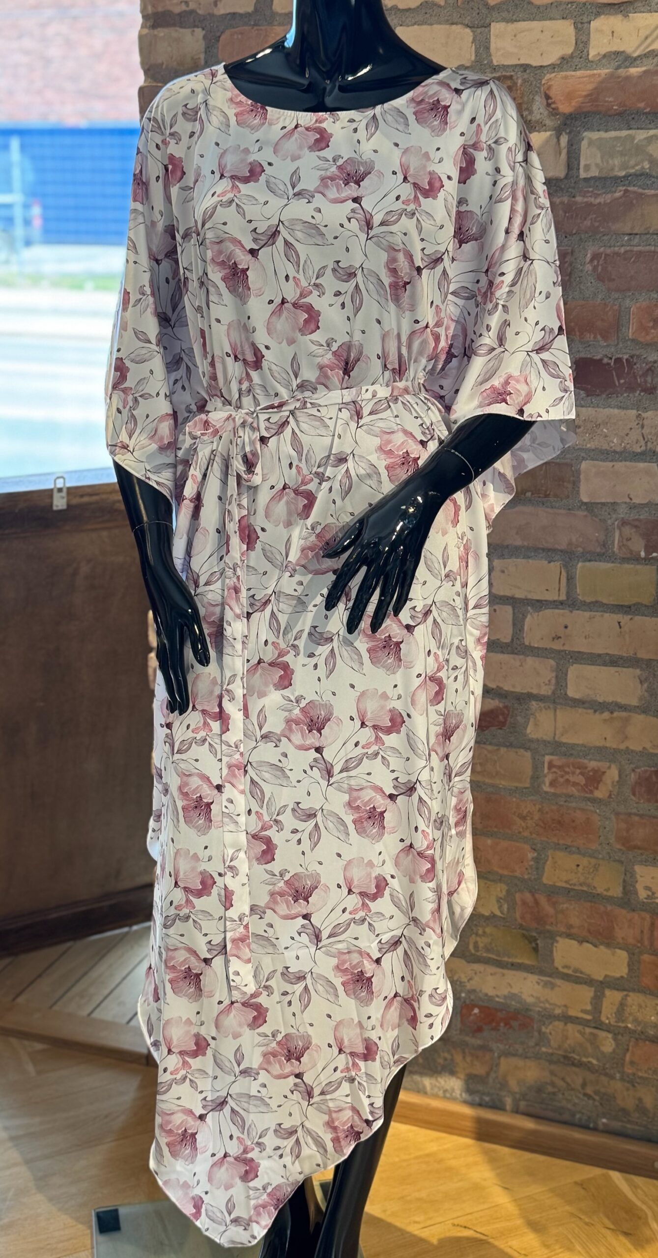 Så er den smukke Noelle kjole fra Design by Lærke tilbage. Kjolen her er v-formet og går ned i en spids, med flotte vidde flagermus ærmer og bælte. Kjolen er helt oplagt til en sommerdag eller som kjole udover en bikini – du kan også blot  bruge den som en blød sag at tage på om aftenen derhjemme. Kjolen er lavet i terylane satin og krøller ikke – derfor er den super nem at rejse med.