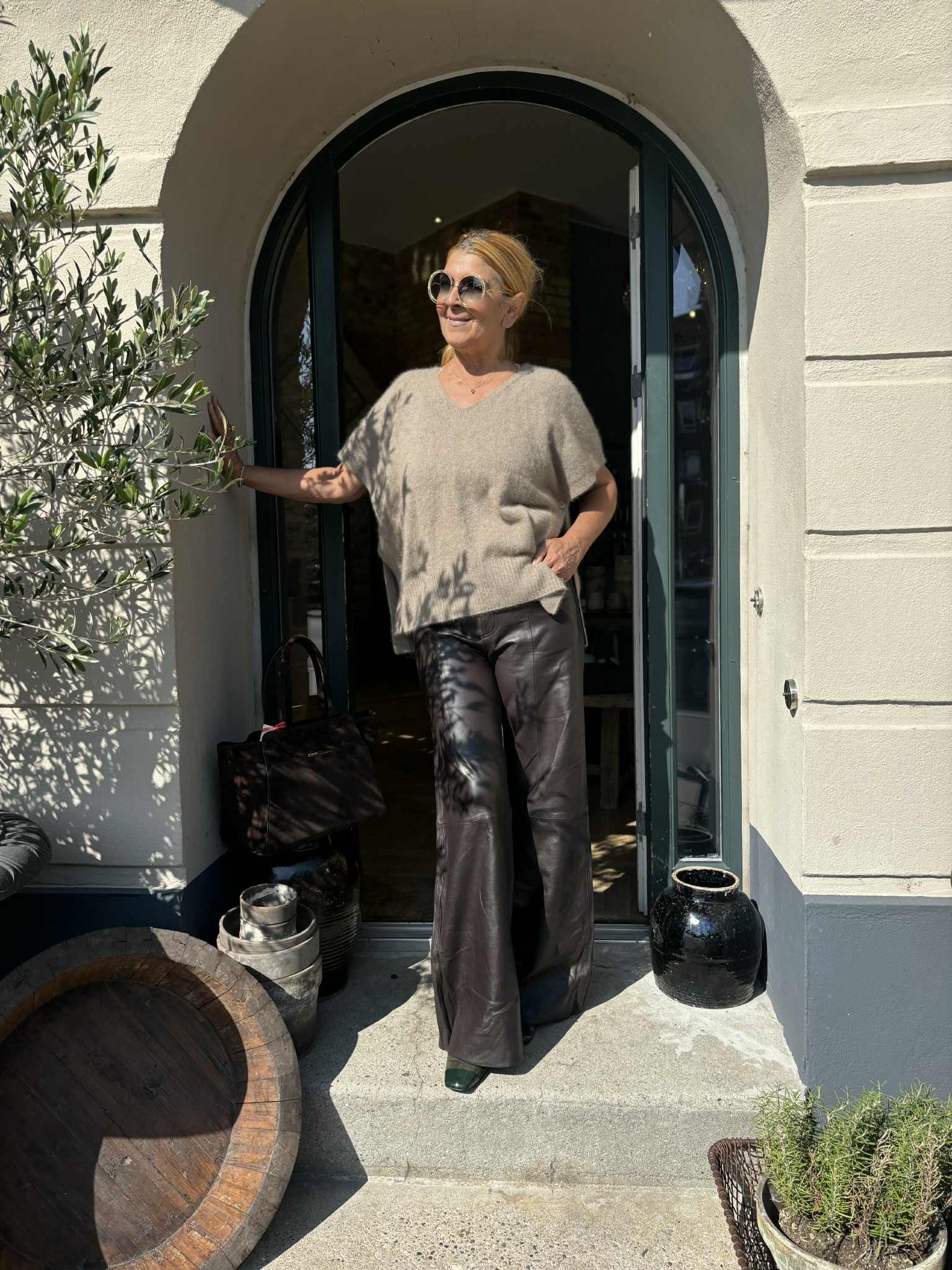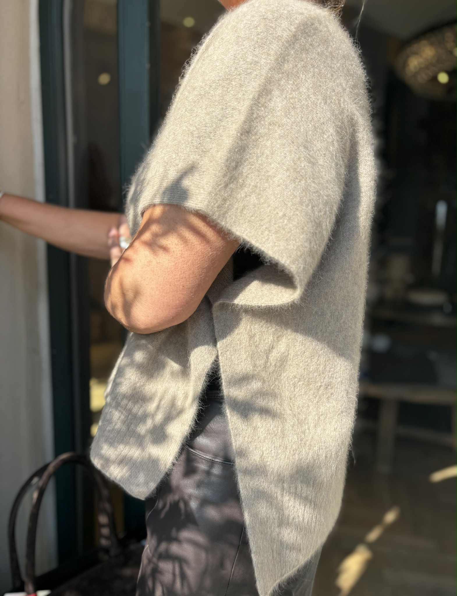 Meget lækker poncho fra Esthemé Cashmere. Denne poncho har v-udskæring, med vidde ærmer og en knap i siden. Ponchoen har et loose fit og er lavet i en blød blød kvalitet; raccoon, angora og uld. Det betyder den ikke kradser og er fantastisk at have i sit klædeskab til kolde tider.