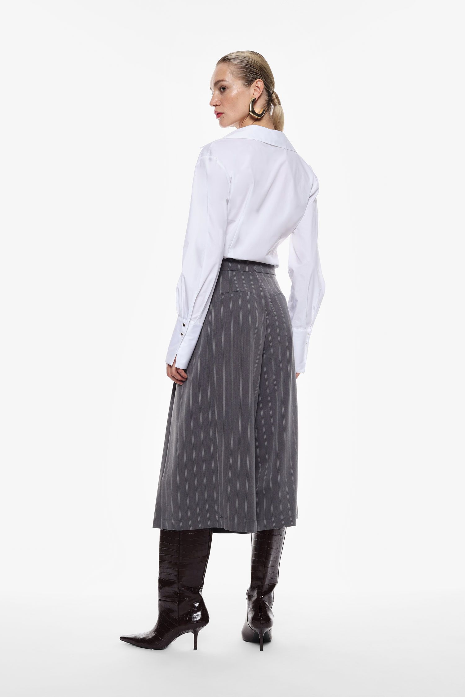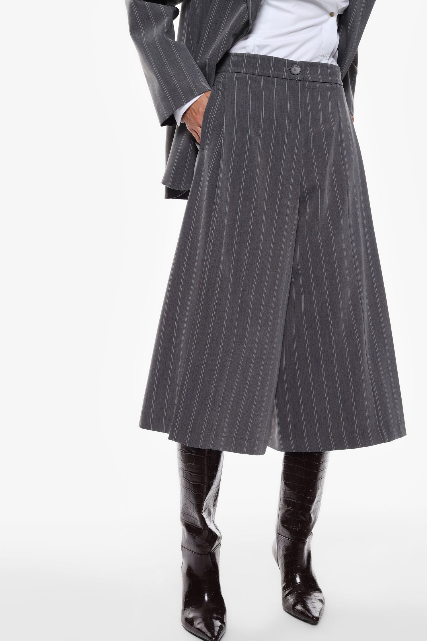 Top fede culotte bukser fra Imperial. Bukserne er stumpede og benene er helt vidde. Bukserne lukkes med knap og lynlås og har paspolerede baglommer og almindelig skrålommer foran.