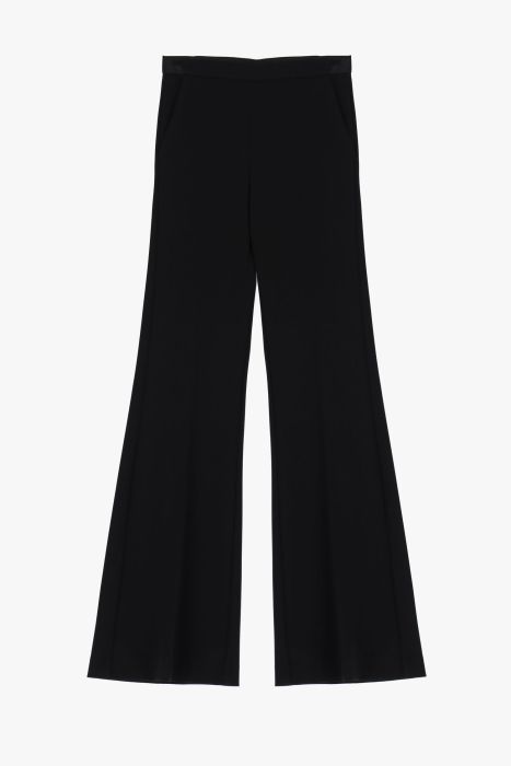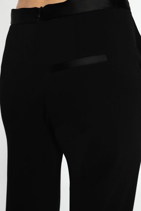 Top lækre bukser fra Imperial. Bukserne er sorte, med satin lignende detaljer i livet og på baglommen. Bukserne lukkes med lynlås bagpå.