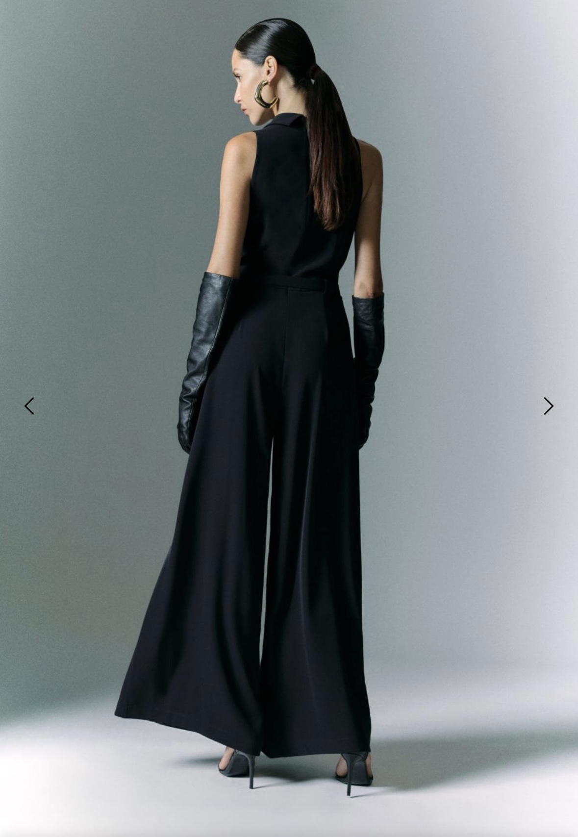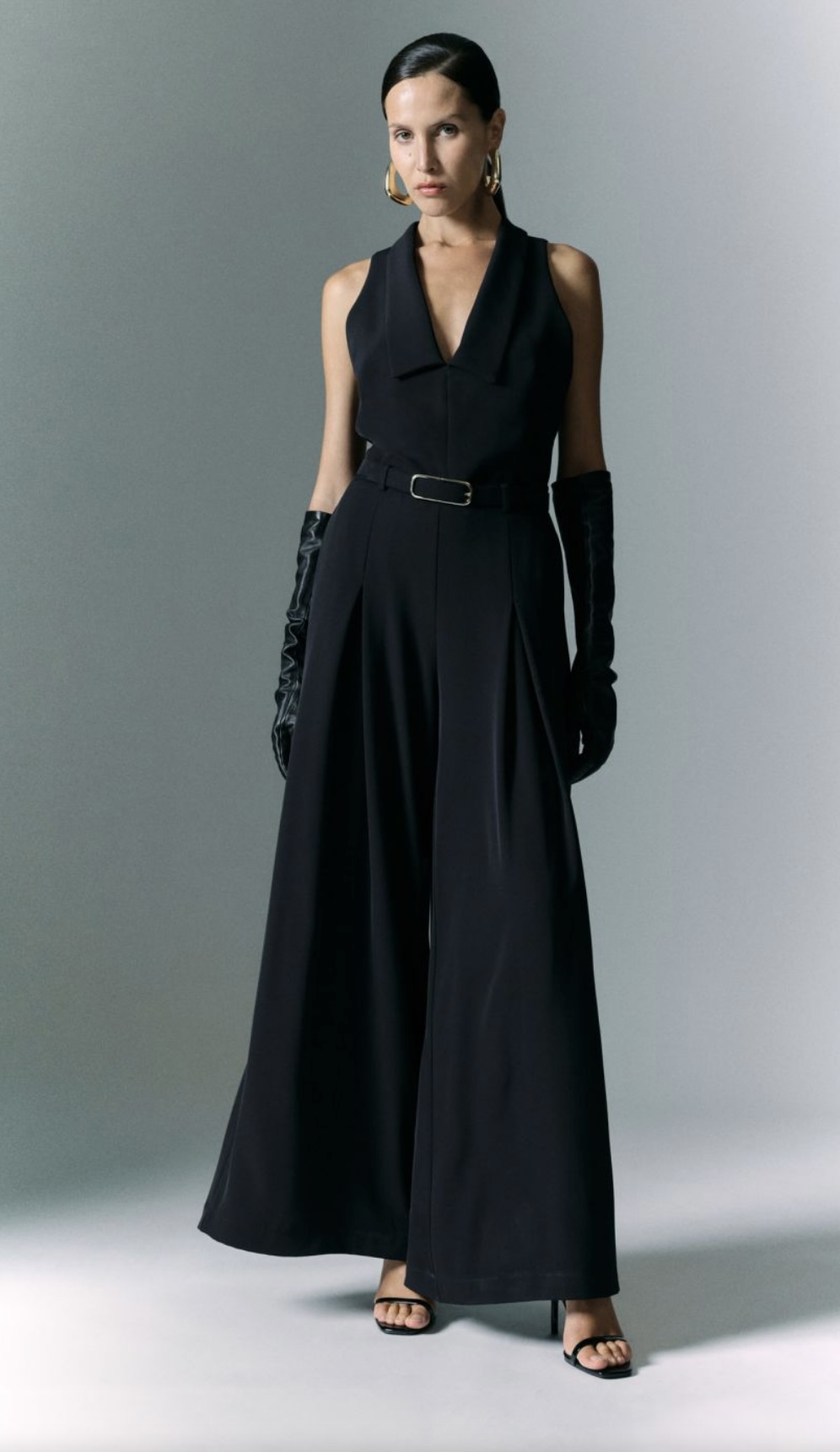 Top lækker buksedragt fra Imperial. Buksedragten er uden ærmer, med v-udskæring og en fin krave. Buksedragten har helt vidde ben og fuld ben længde og bælte i taljen. Buksedragten har skrålommer.