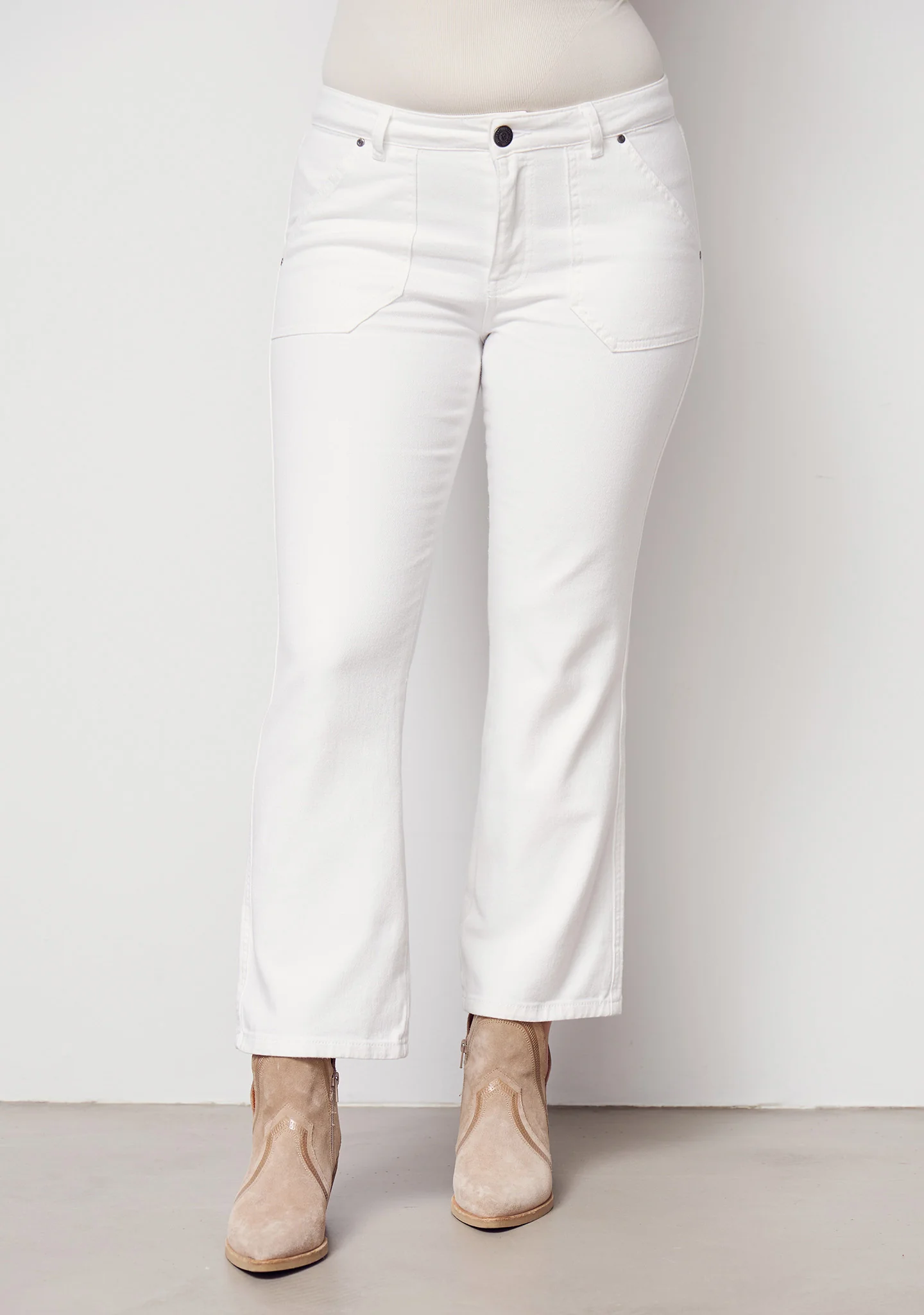 Lækre stretchy como flare bukser fra ISAY i Hvid. Bukserne har god stretch, samt forlommer og baglommer. Disse bukser har en lækker komfort.