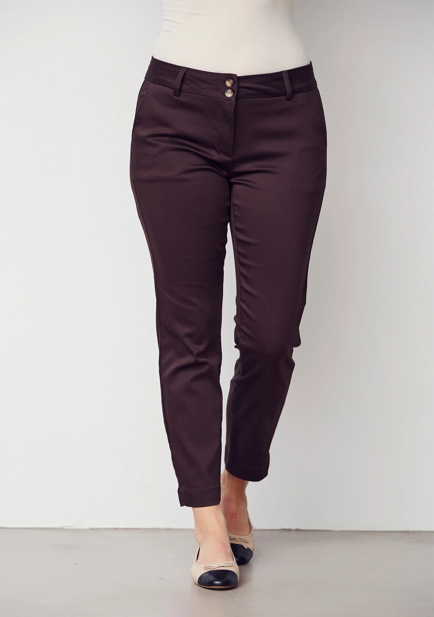 Så er de fede chino pants tilbage. En lækker og klassisk Chino fra ISAY, i mørkebrun. Chinoen er 7/8 del længde, med et lille slids i bunden. Bukserne har sidelommer og paspolerede baglommer, samt lynlås/knap lukning.