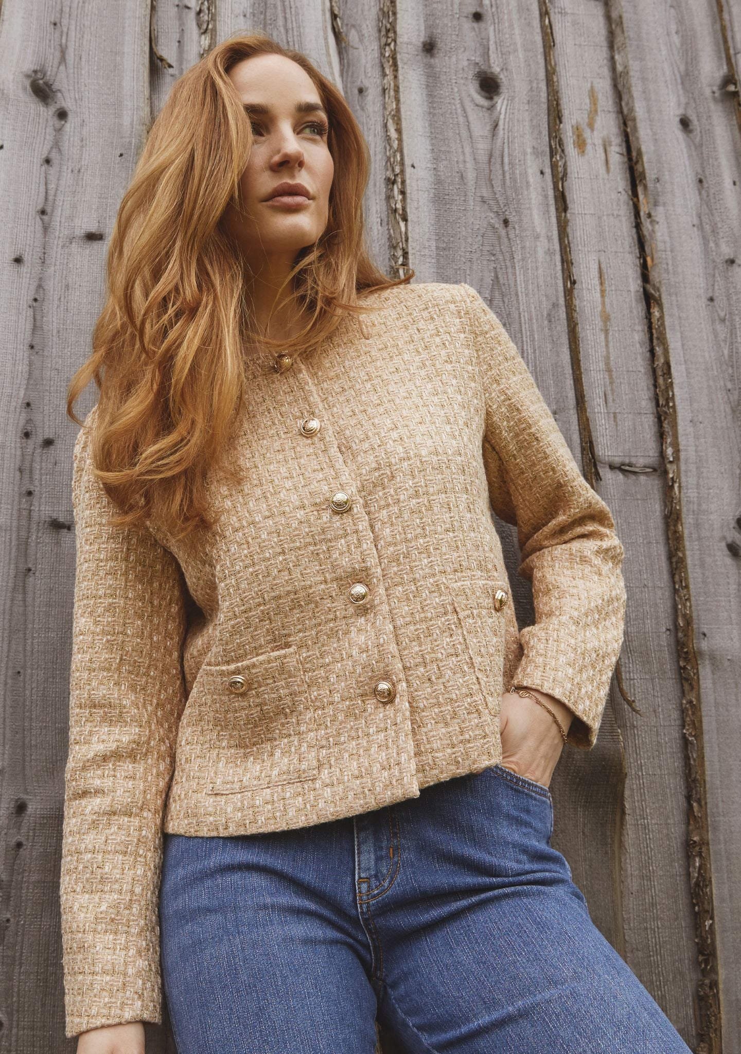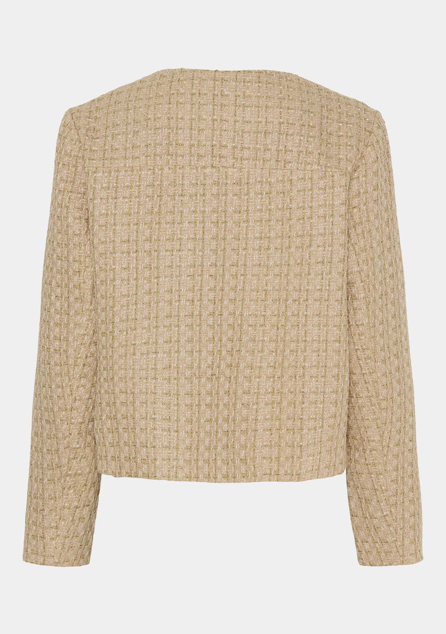 Super flot jakke fra ISAY. Jakken er camel farvet, med fine guldknapper til lukning foran og frontlommer. Jakken er lavet i en lækker bouclé kvalitet, der gør den super elegant og behagelig at have på.