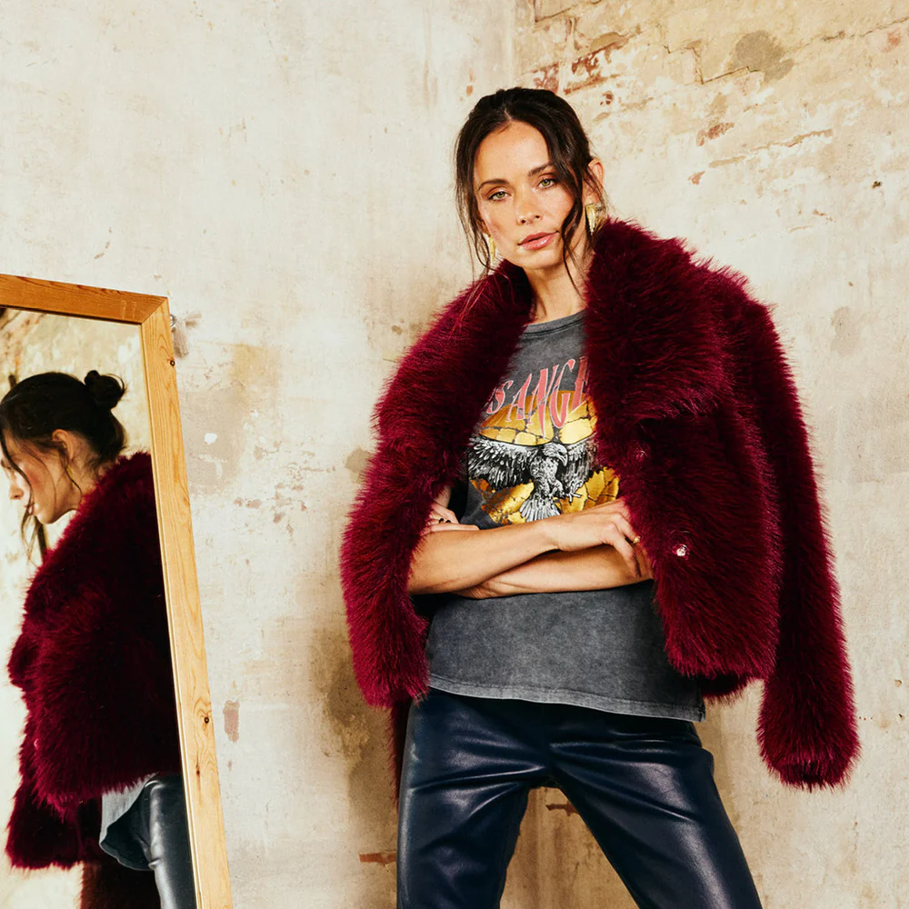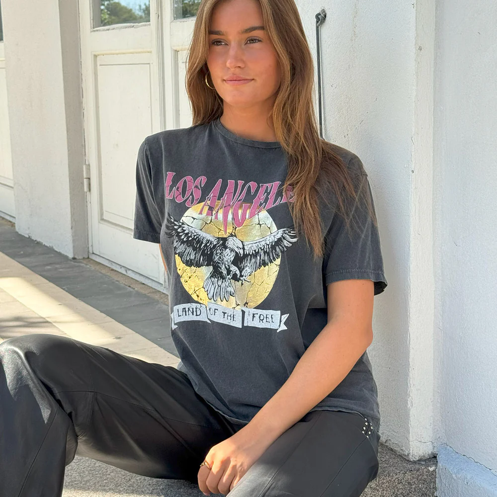 På fronten har t-shirten et print, der giver masser af personlighed og tilfører outfittet kant. Den er nem at style – og endnu nemmere at elske. Brug den sammen med et par skindbukser eller en skindnederdel for et råt og sofistikeret udtryk, eller style den med jeans og sneakers til en mere afslappet hverdagslook.