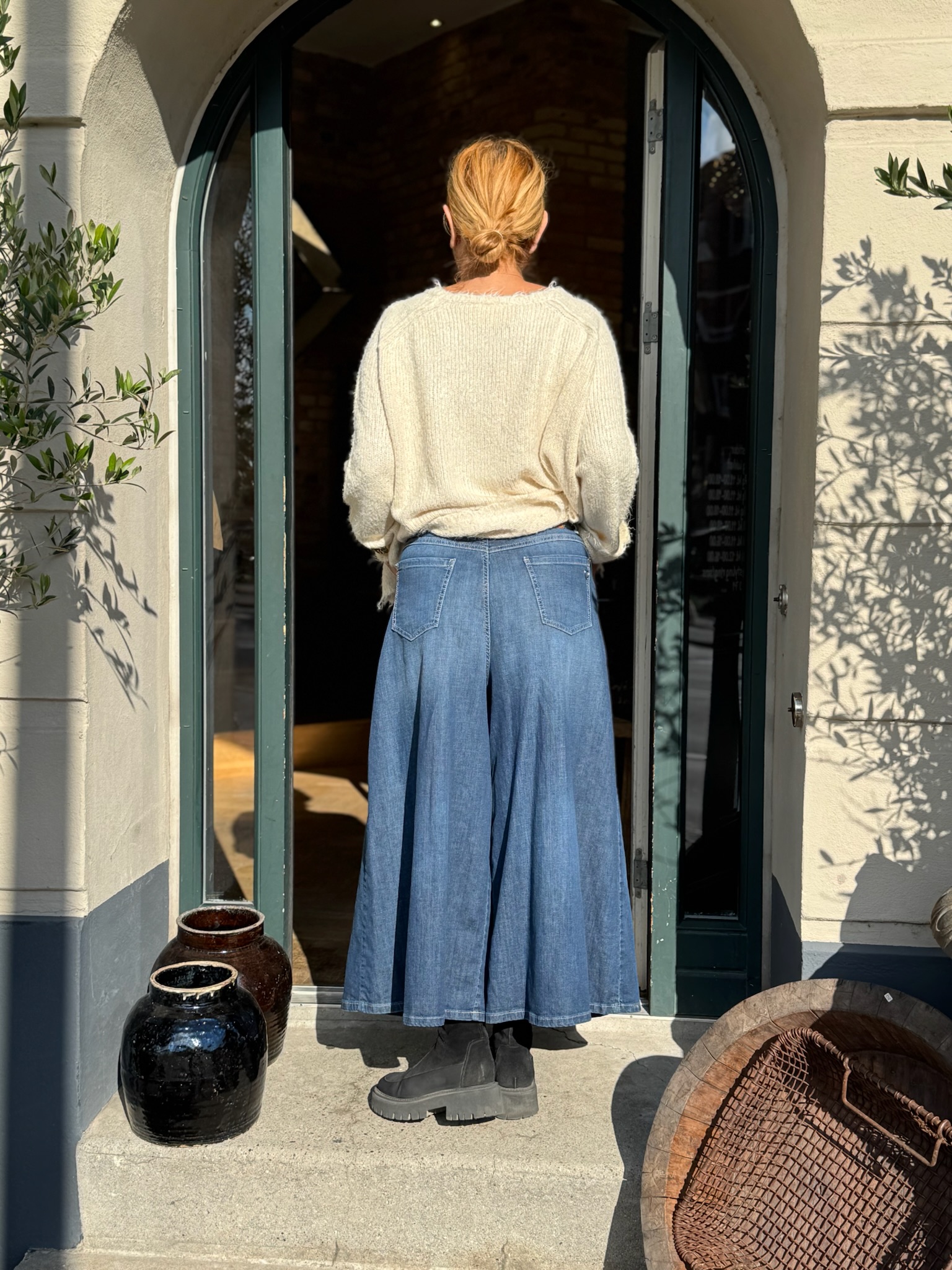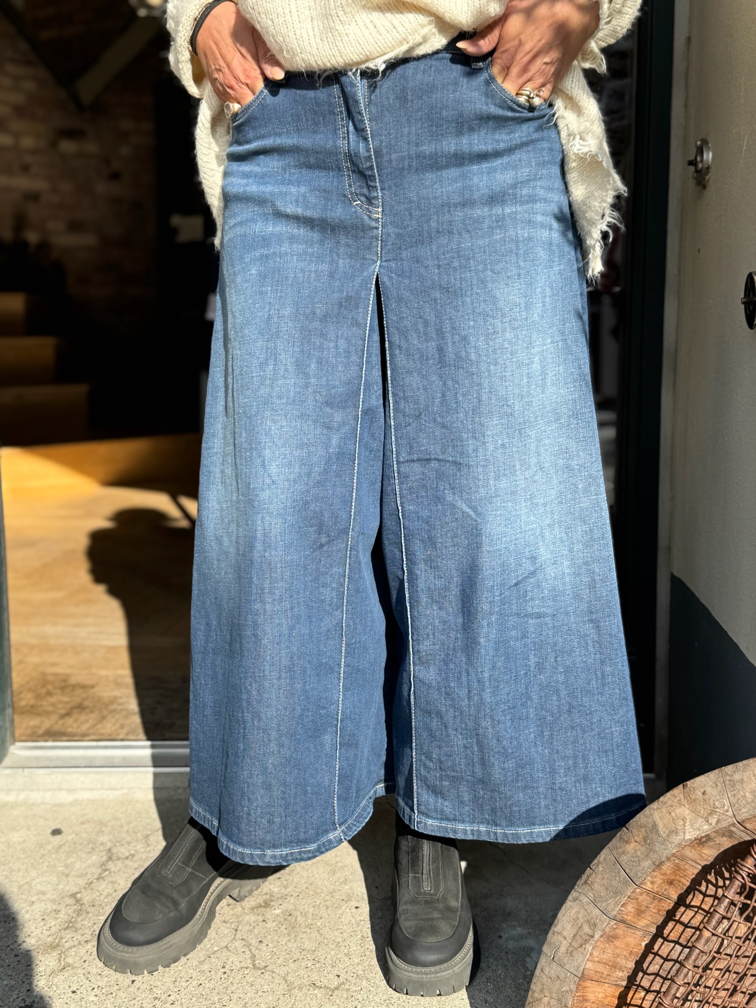 Top fede jeans fra Please, med vidde ben. Disse jeans har 7/8 benlængde, med knap og lynlås lukning, samt baglommer og forlommer. De er lavet i en tynd, let og lækker kvalitet, som sikrer dig komfort dagen lang.