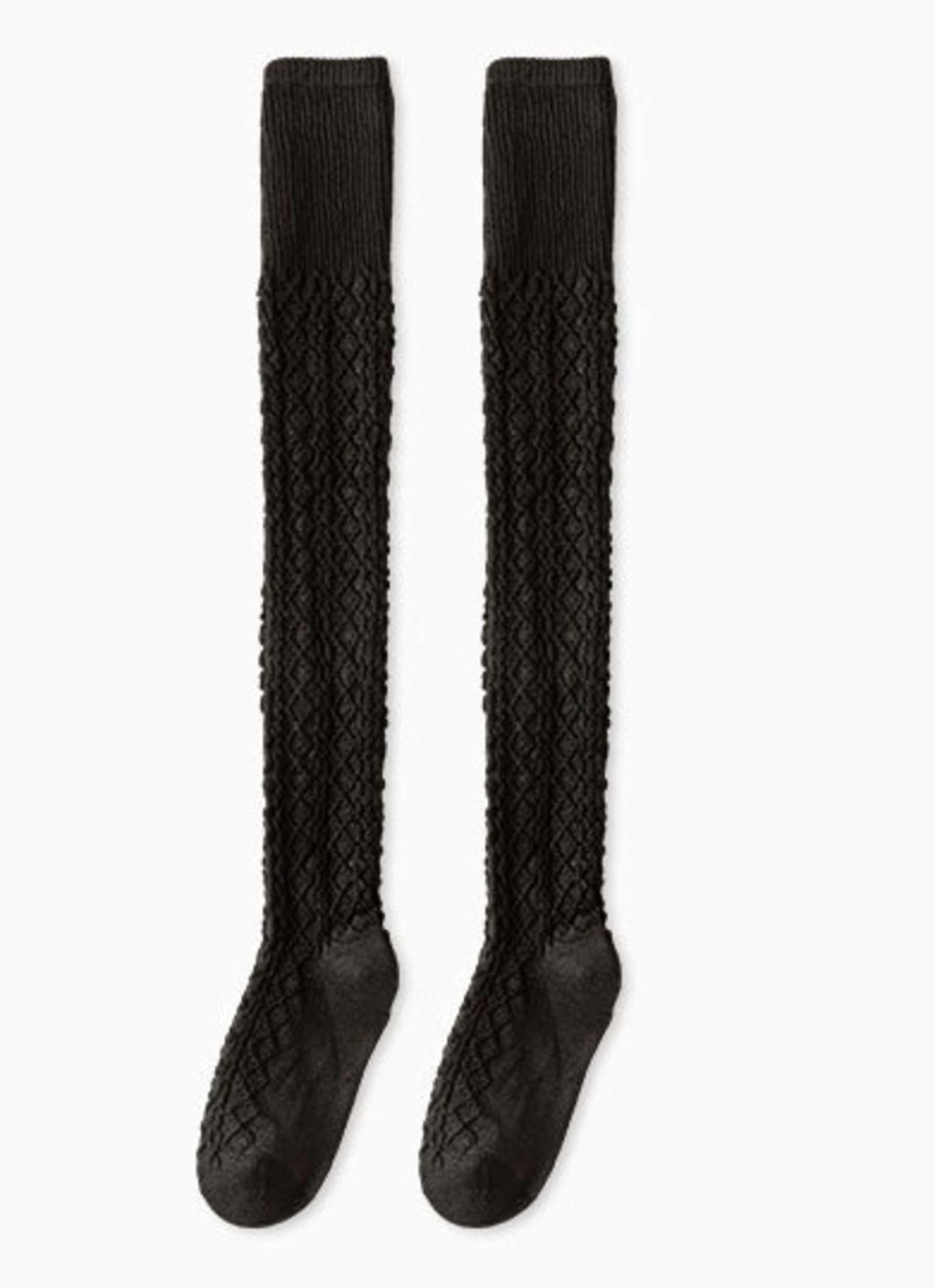 Lækre lange strømper fra Plissé Copenhagen. Strømperne er lange og kan strækkes helt op til lårene. Strømperne har et flot kabel mønster og fåes i brun, sort og grå.