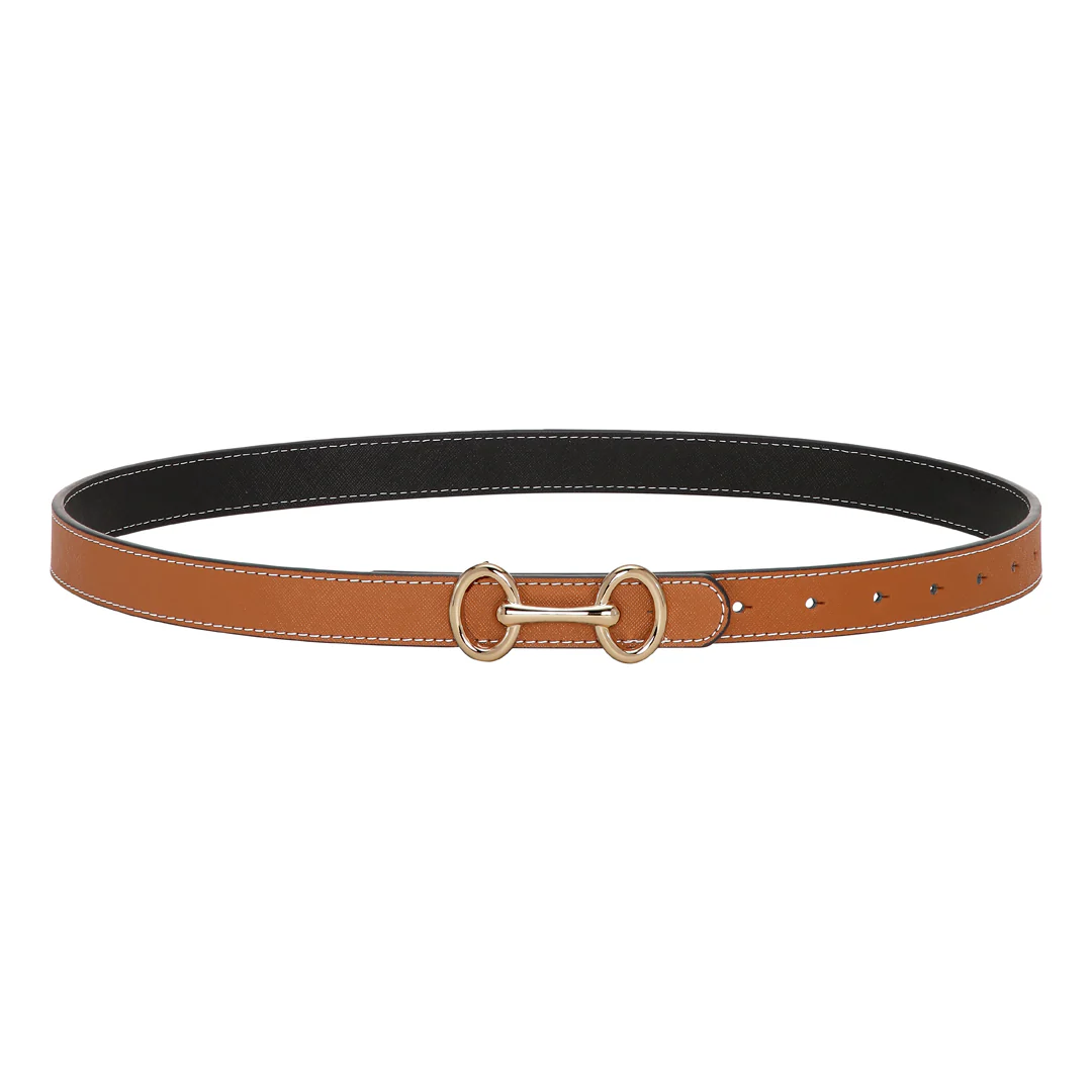 Lækker bælte fra Plissé Copenhagen. Bæltet er cognac/sort og er vendbart, således at spændet kan tages af og vendes til den farve man ønsker.