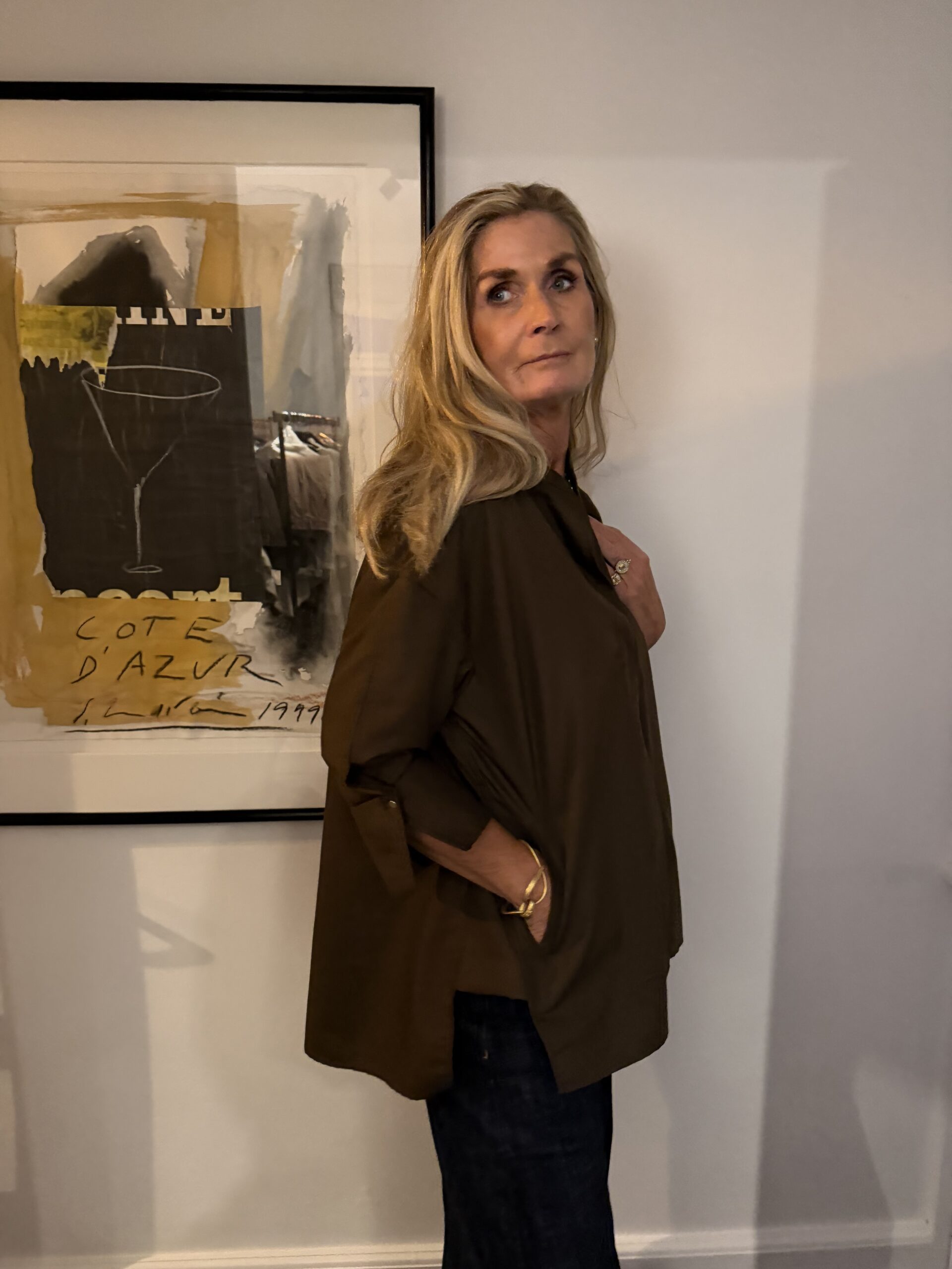 Super smuk skjorte fra Wauw. Skjorten har et loose fit, med kinakrave og skjult knaplukning. Skjorten har flot brodering bagpå og fåes i brun og hvid. Skjorten har en v-udskæring, som åbner skjorten flot op. Skjorten har sidelommer.
