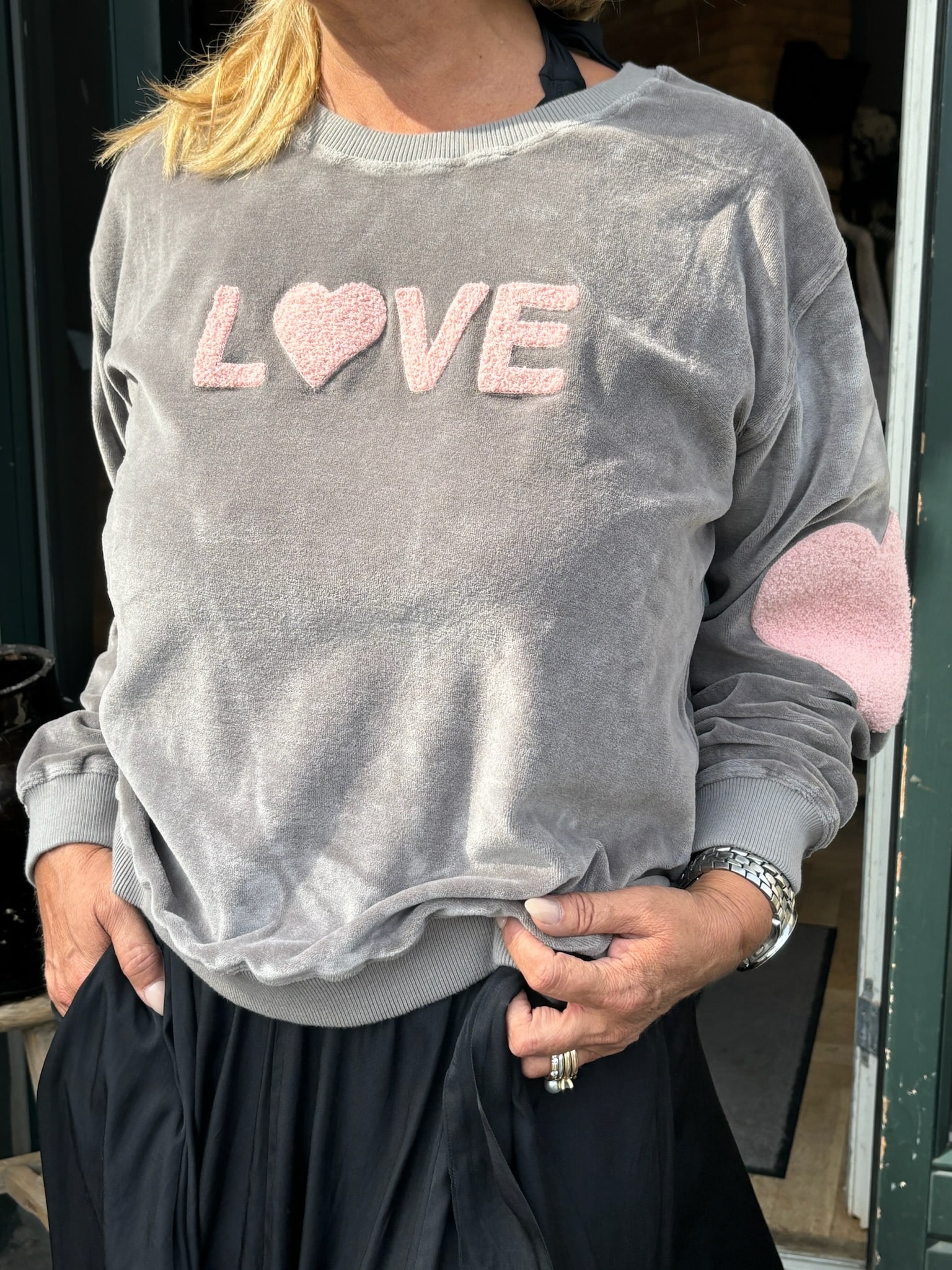 Rosa´s Love ‘LOVE’ Sweatshirt Velour – Grå/Rosa