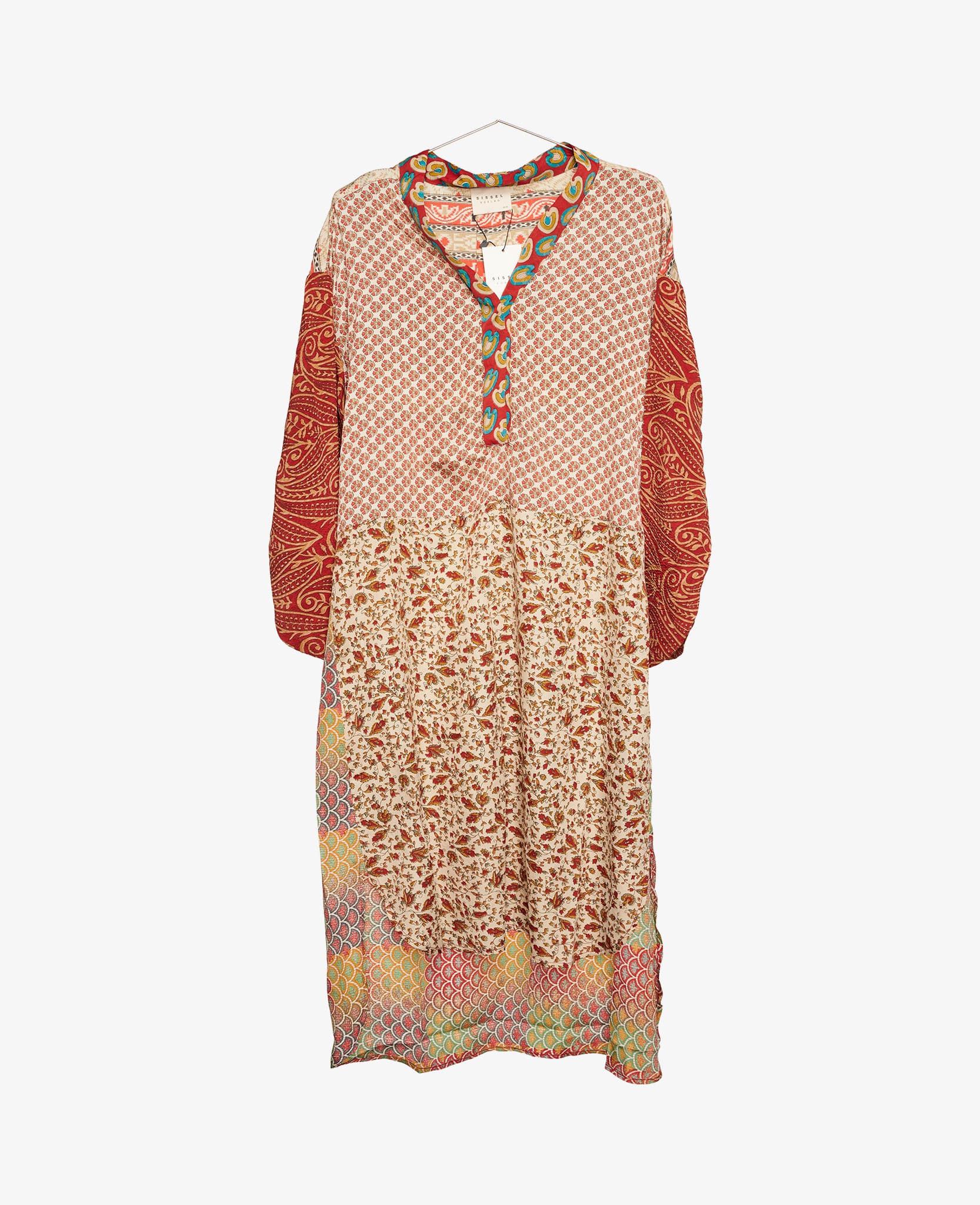 Skønneste kaftan fra Sissel Edelbo. Kaftanen har en løs pasform og er længere bagpå end foran. Kjolen har 3/4 ærme og v-udskæring. Alle Fleur De Lis kjoler er unikke og one of kind.