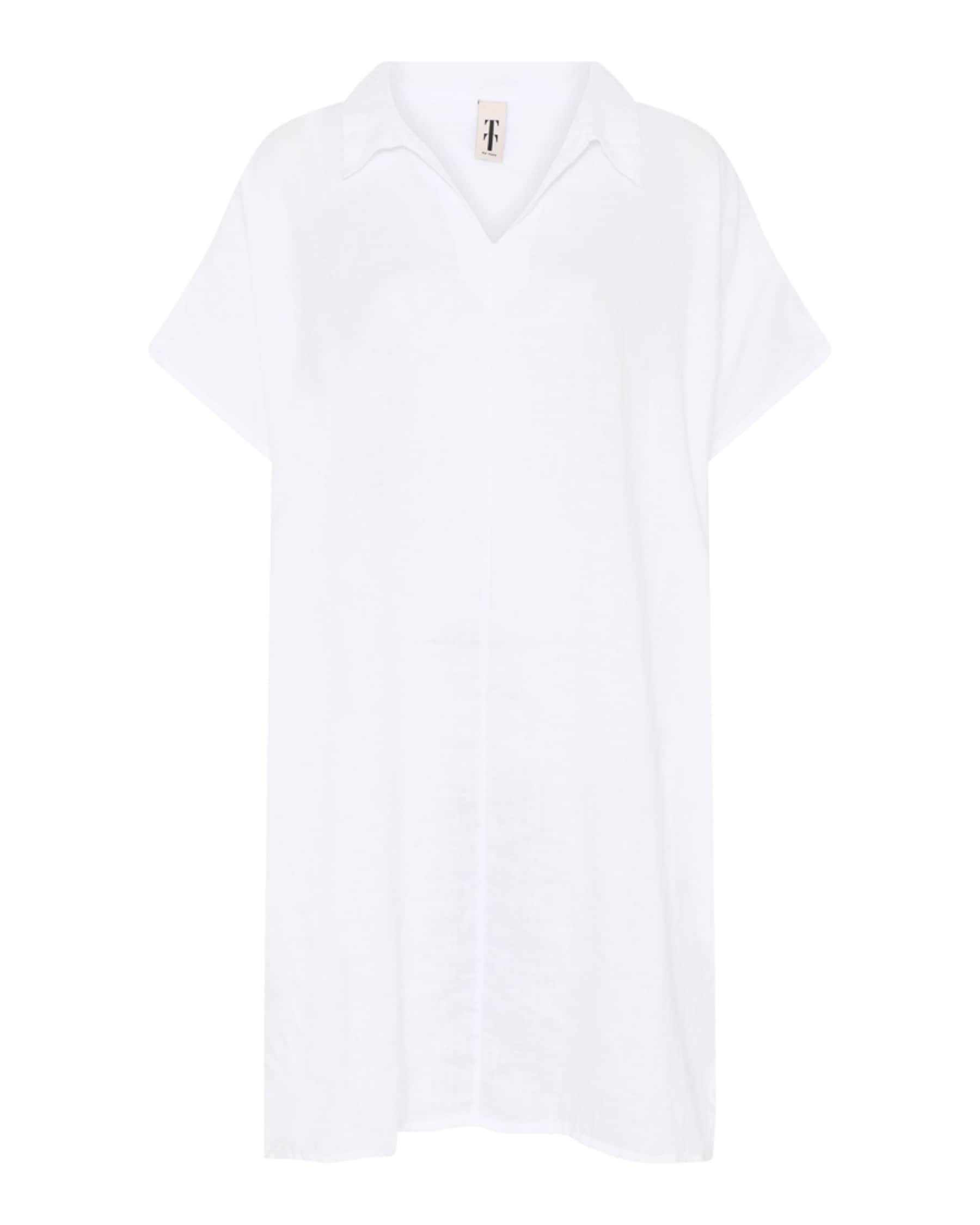 Fin kaftan fra Tif Tiffy. Kaftanen har korte ærmer og en lille v-udskæring med krave. Kaftanen er oversized og onesize. Den fåes i 3 farver.