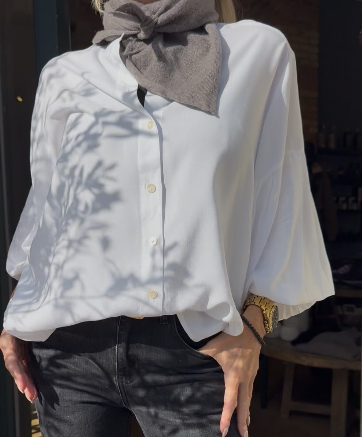 Smuk skjorte fra Wauw i hvid. Skjorten har et loose fit, med knaplukning foran og ballonærmer. Skjorten har pæne plisserede detaljer på ærmerne.