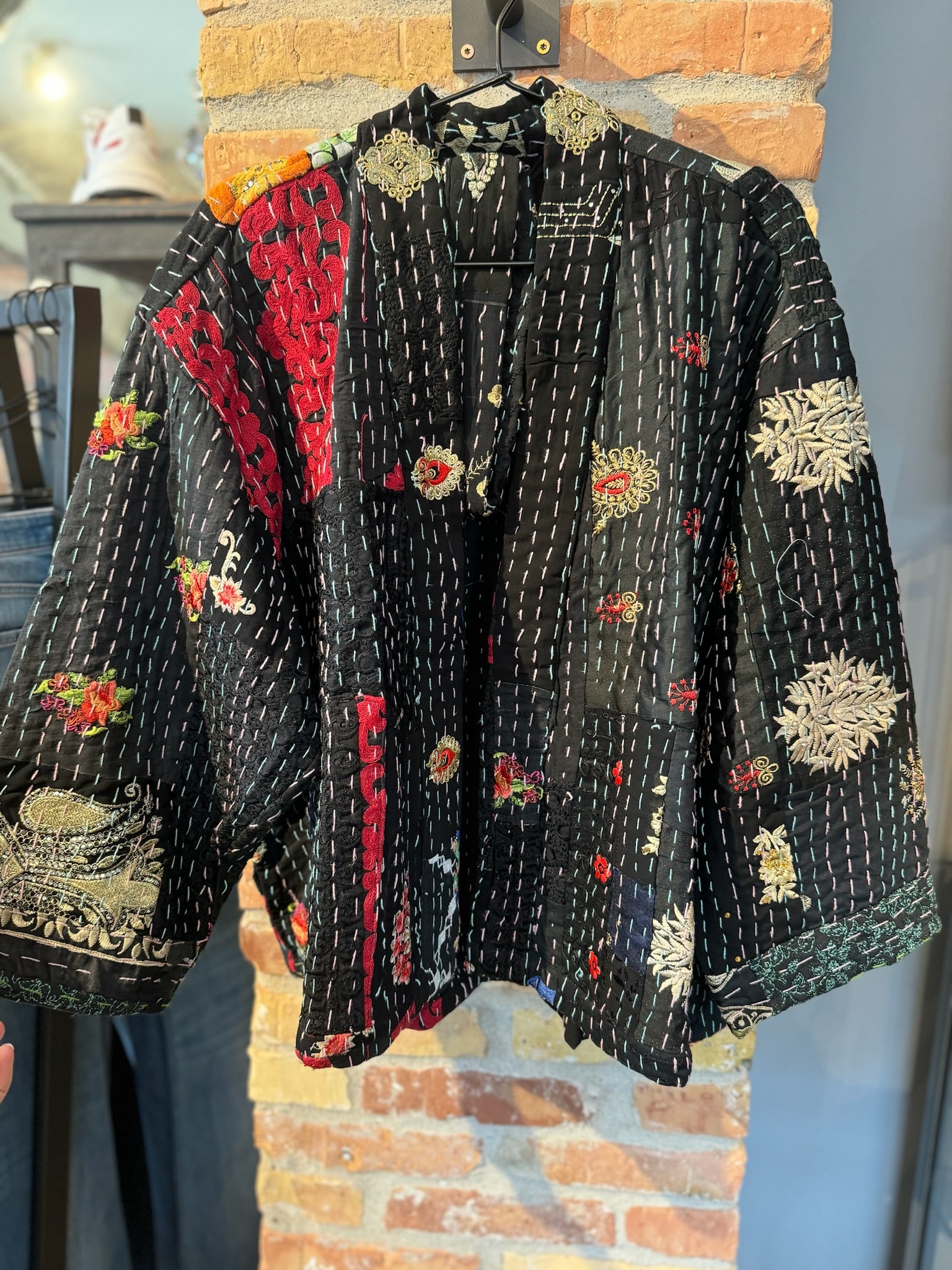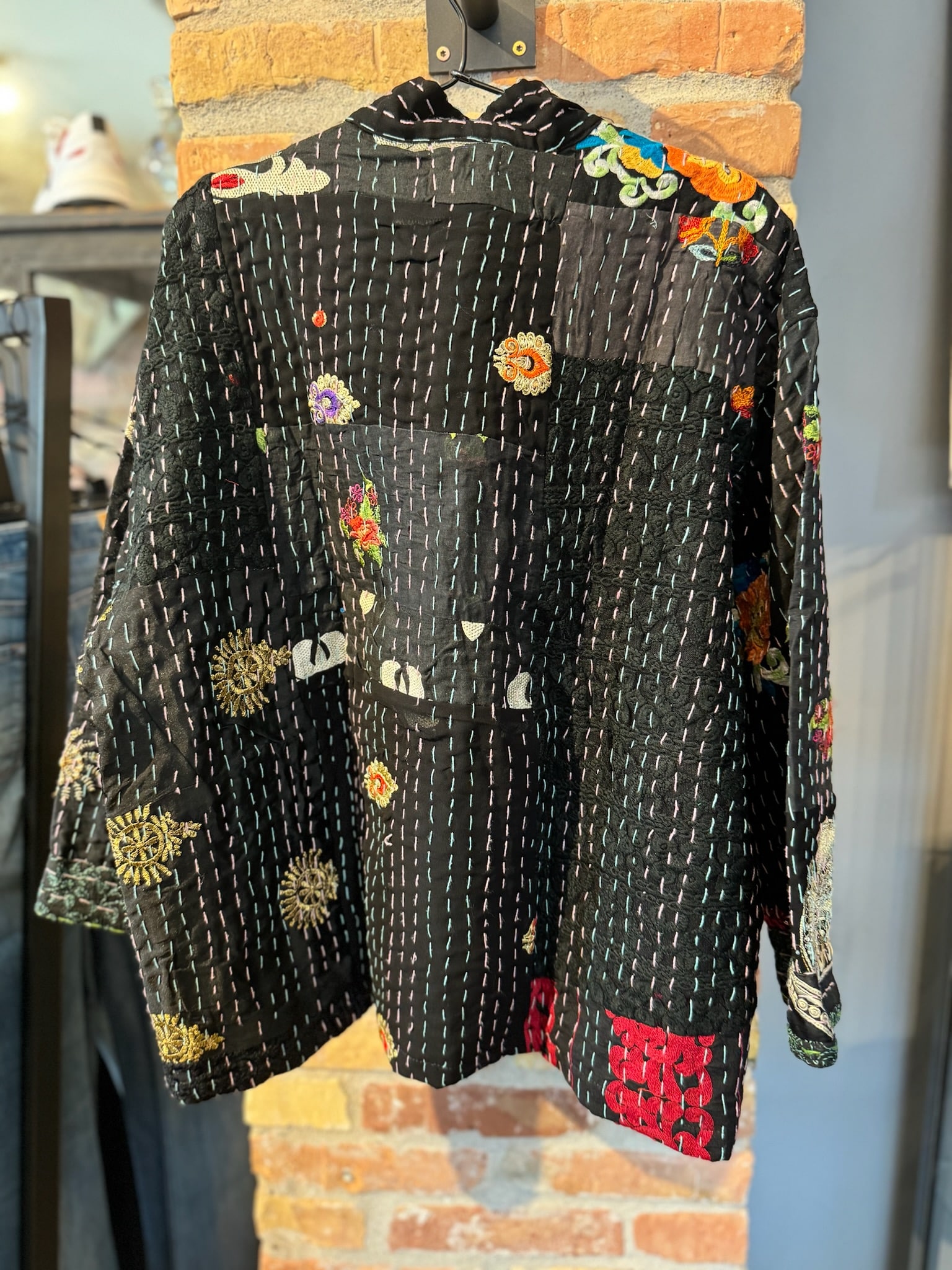 Super fed jakke fra Wauw. Jakken er quilted, med en bundfarve i sort og forskellige flotte broderier og patches på. Jakkerne er unika, hvilket vil sige de alle sammen er forskellige og ikke to er ens.