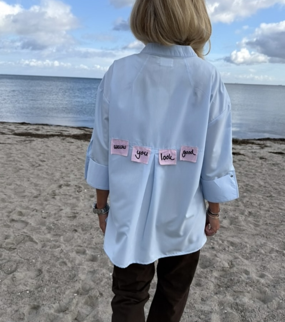 Wauw Luna Skjorte ‘You look good’ – Lyseblå