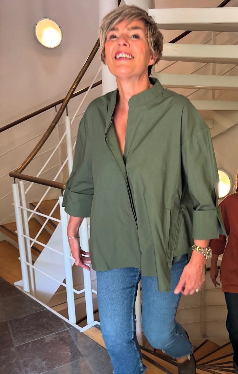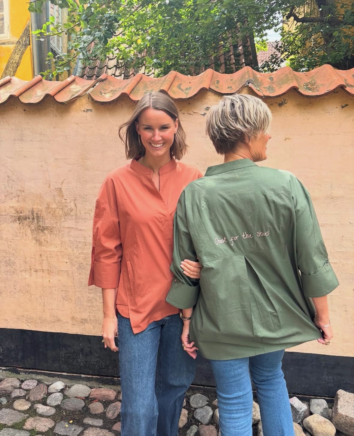 Super smuk skjorte fra Wauw. Skjorten har et loose fit, med kinakrave og skjult knaplukning. Skjorten har tekst bagpå med teksten ‘shoot for the stars’. Skjorten har en v-udskæring, som åbner skjorten flot op. Skjorten har sidelommer.