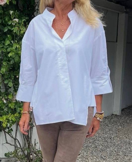 Super smuk skjorte fra Wauw. Skjorten har et loose fit, med kinakrave og skjult knaplukning. Skjorten har rosa farvede ‘lapper’ bagpå med teksten ‘The Good Luck Club’. Skjorten har en v-udskæring, som åbner skjorten flot op. Skjorten har sidelommer.