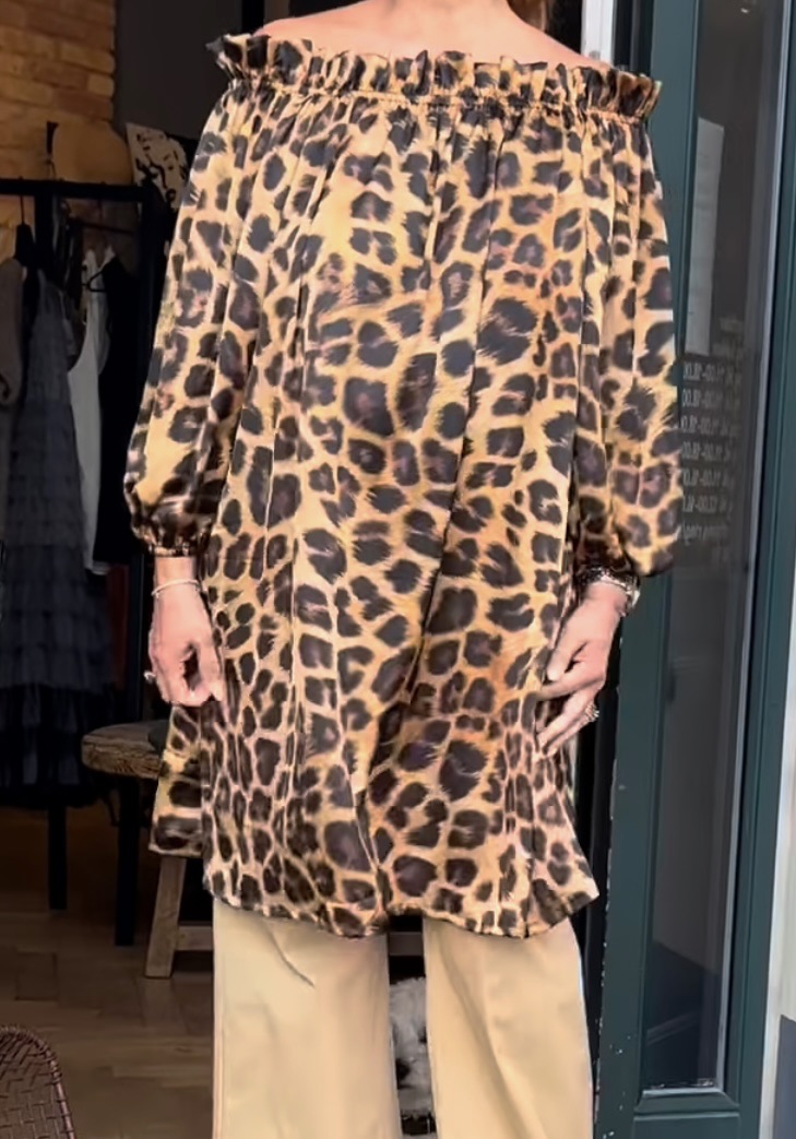 Design by Lærke Leopard Elisabeth Off-Shoulder Kjole